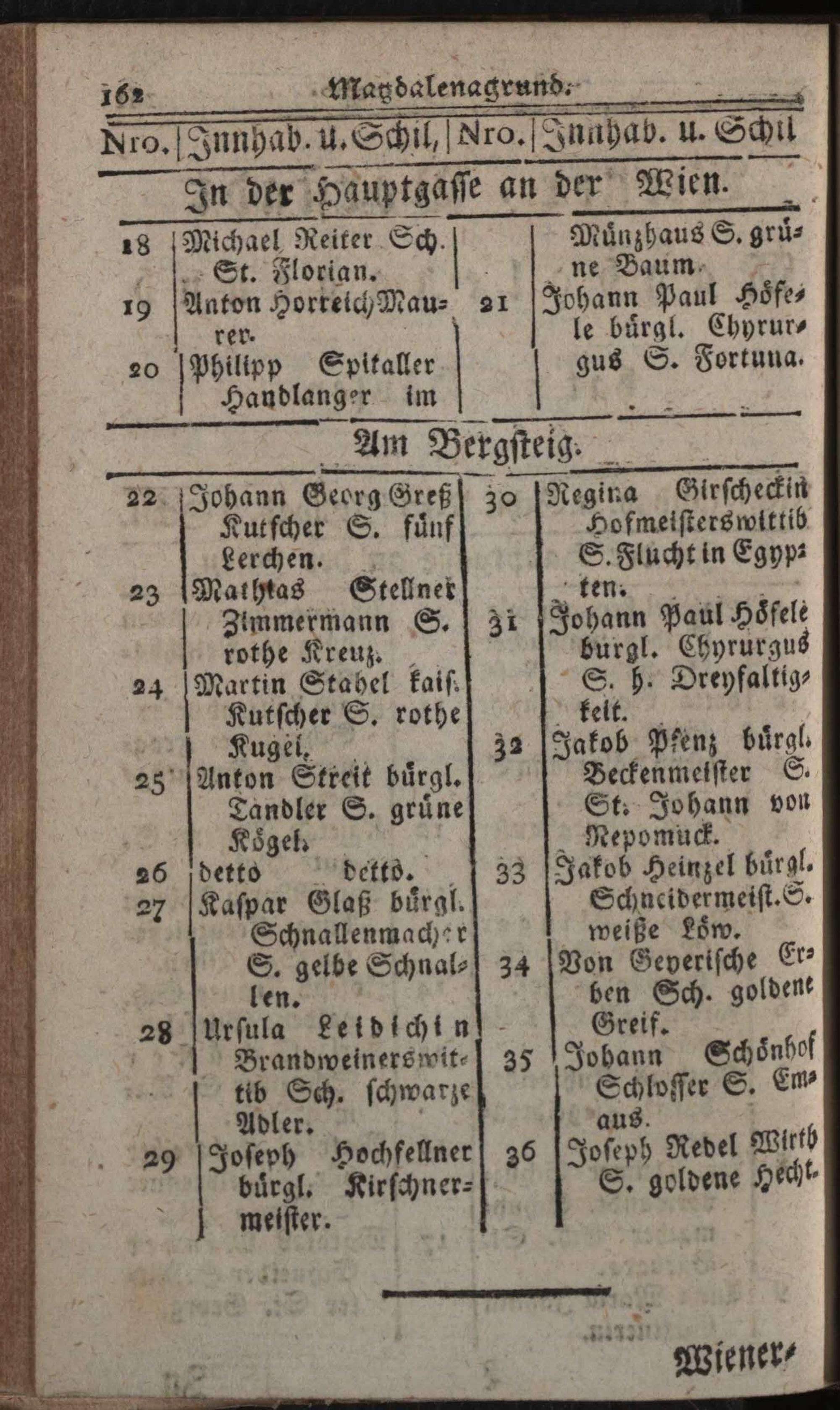Verzeichniß der in der Kaiserl. Königl. Haupt- und Residenzstadt Wien, sammt dazu gehörigen Vorstädten und Gründen, befindlichen numerirten Häusern, derselben wahrhafte Eigenthümer, und deren Konditionen, nebst Schildern und Plätzen : Auf das genaueste nach denen Grund- und Konscriptions-Büchern entworfen / von Joseph Maximilian Fischer