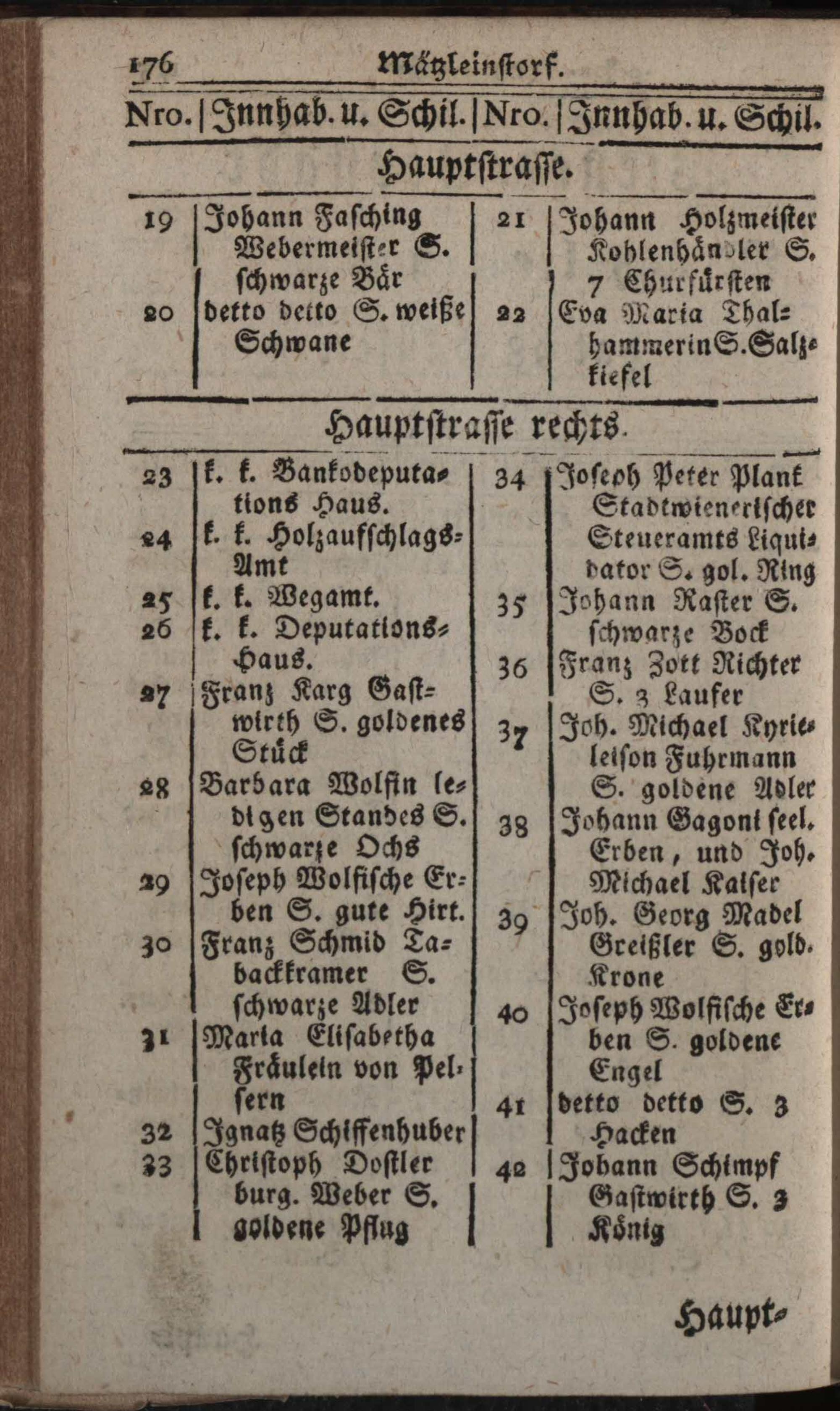 Verzeichniß der in der Kaiserl. Königl. Haupt- und Residenzstadt Wien, sammt dazu gehörigen Vorstädten und Gründen, befindlichen numerirten Häusern, derselben wahrhafte Eigenthümer, und deren Konditionen, nebst Schildern und Plätzen : Auf das genaueste nach denen Grund- und Konscriptions-Büchern entworfen / von Joseph Maximilian Fischer