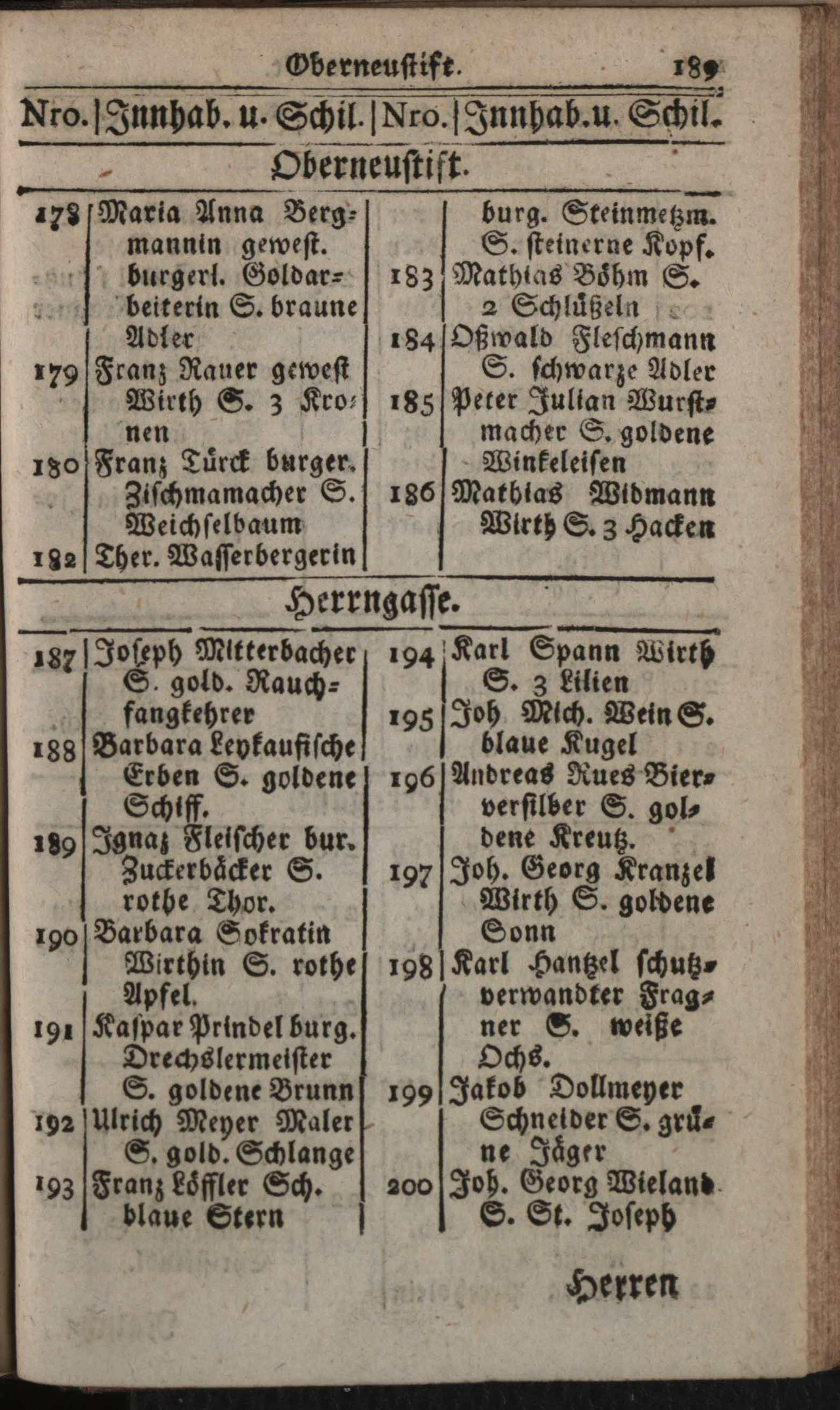 Verzeichniß der in der Kaiserl. Königl. Haupt- und Residenzstadt Wien, sammt dazu gehörigen Vorstädten und Gründen, befindlichen numerirten Häusern, derselben wahrhafte Eigenthümer, und deren Konditionen, nebst Schildern und Plätzen : Auf das genaueste nach denen Grund- und Konscriptions-Büchern entworfen / von Joseph Maximilian Fischer