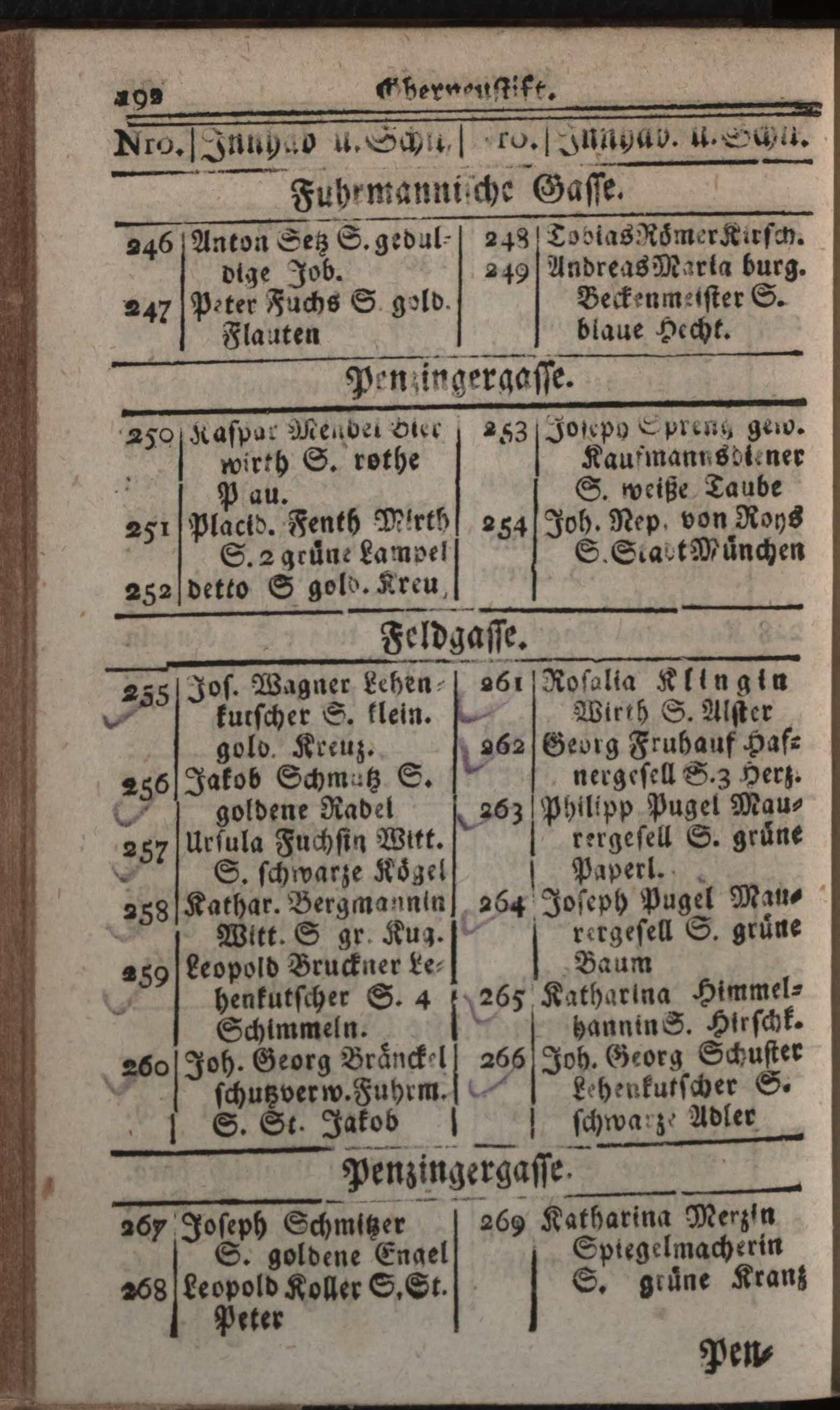 Verzeichniß der in der Kaiserl. Königl. Haupt- und Residenzstadt Wien, sammt dazu gehörigen Vorstädten und Gründen, befindlichen numerirten Häusern, derselben wahrhafte Eigenthümer, und deren Konditionen, nebst Schildern und Plätzen : Auf das genaueste nach denen Grund- und Konscriptions-Büchern entworfen / von Joseph Maximilian Fischer