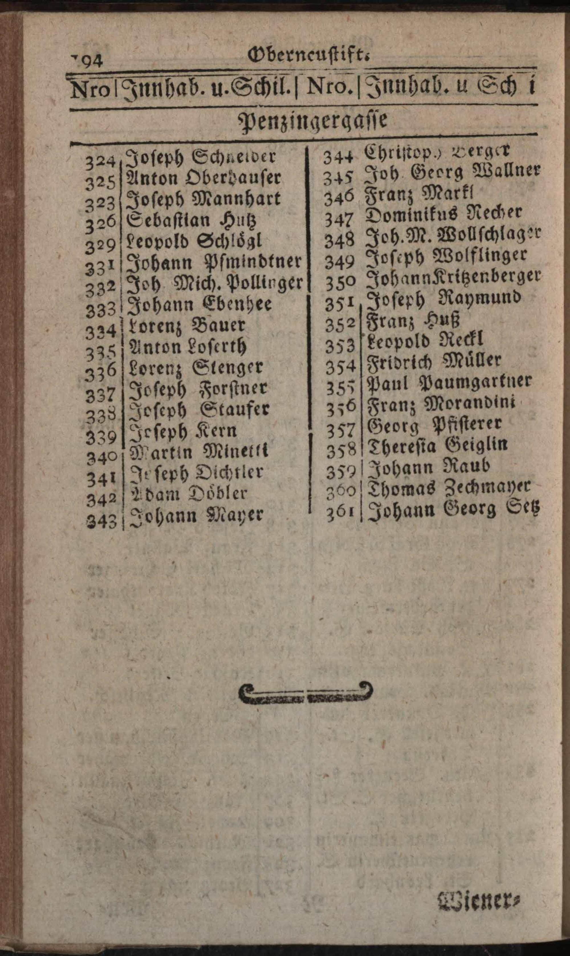 Verzeichniß der in der Kaiserl. Königl. Haupt- und Residenzstadt Wien, sammt dazu gehörigen Vorstädten und Gründen, befindlichen numerirten Häusern, derselben wahrhafte Eigenthümer, und deren Konditionen, nebst Schildern und Plätzen : Auf das genaueste nach denen Grund- und Konscriptions-Büchern entworfen / von Joseph Maximilian Fischer