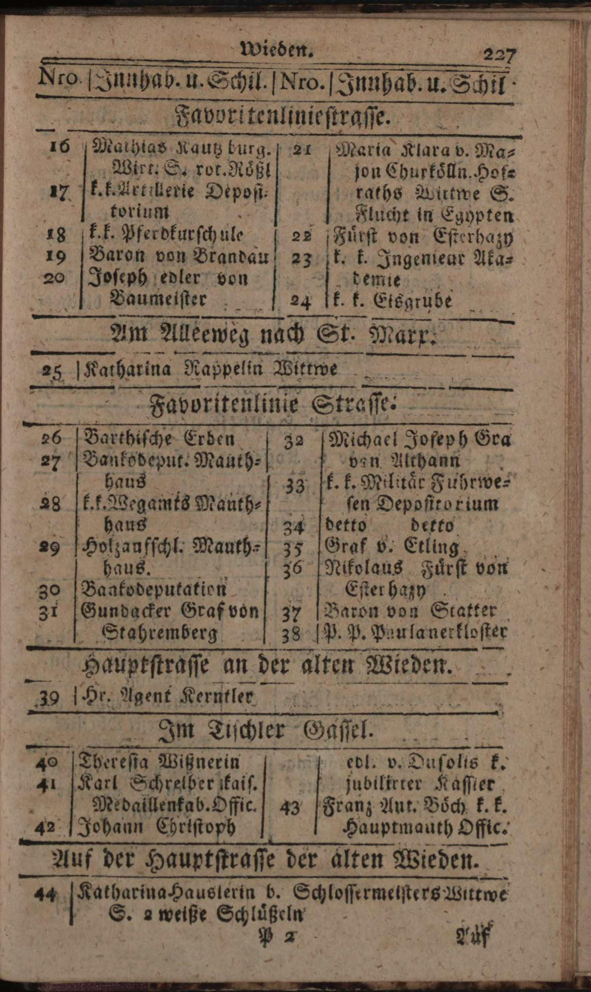 Verzeichniß der in der Kaiserl. Königl. Haupt- und Residenzstadt Wien, sammt dazu gehörigen Vorstädten und Gründen, befindlichen numerirten Häusern, derselben wahrhafte Eigenthümer, und deren Konditionen, nebst Schildern und Plätzen : Auf das genaueste nach denen Grund- und Konscriptions-Büchern entworfen / von Joseph Maximilian Fischer