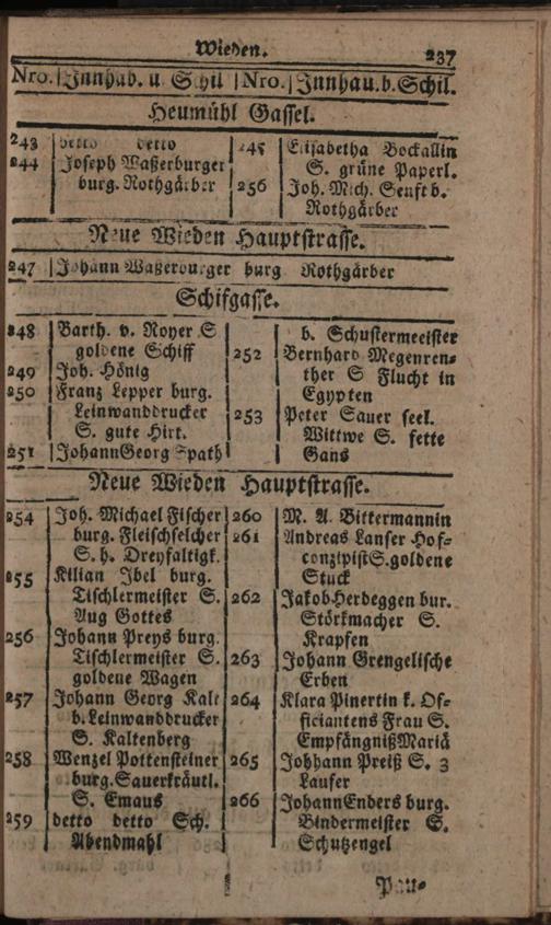 Verzeichniß der in der Kaiserl. Königl. Haupt- und Residenzstadt Wien, sammt dazu gehörigen Vorstädten und Gründen, befindlichen numerirten Häusern, derselben wahrhafte Eigenthümer, und deren Konditionen, nebst Schildern und Plätzen : Auf das genaueste nach denen Grund- und Konscriptions-Büchern entworfen / von Joseph Maximilian Fischer
