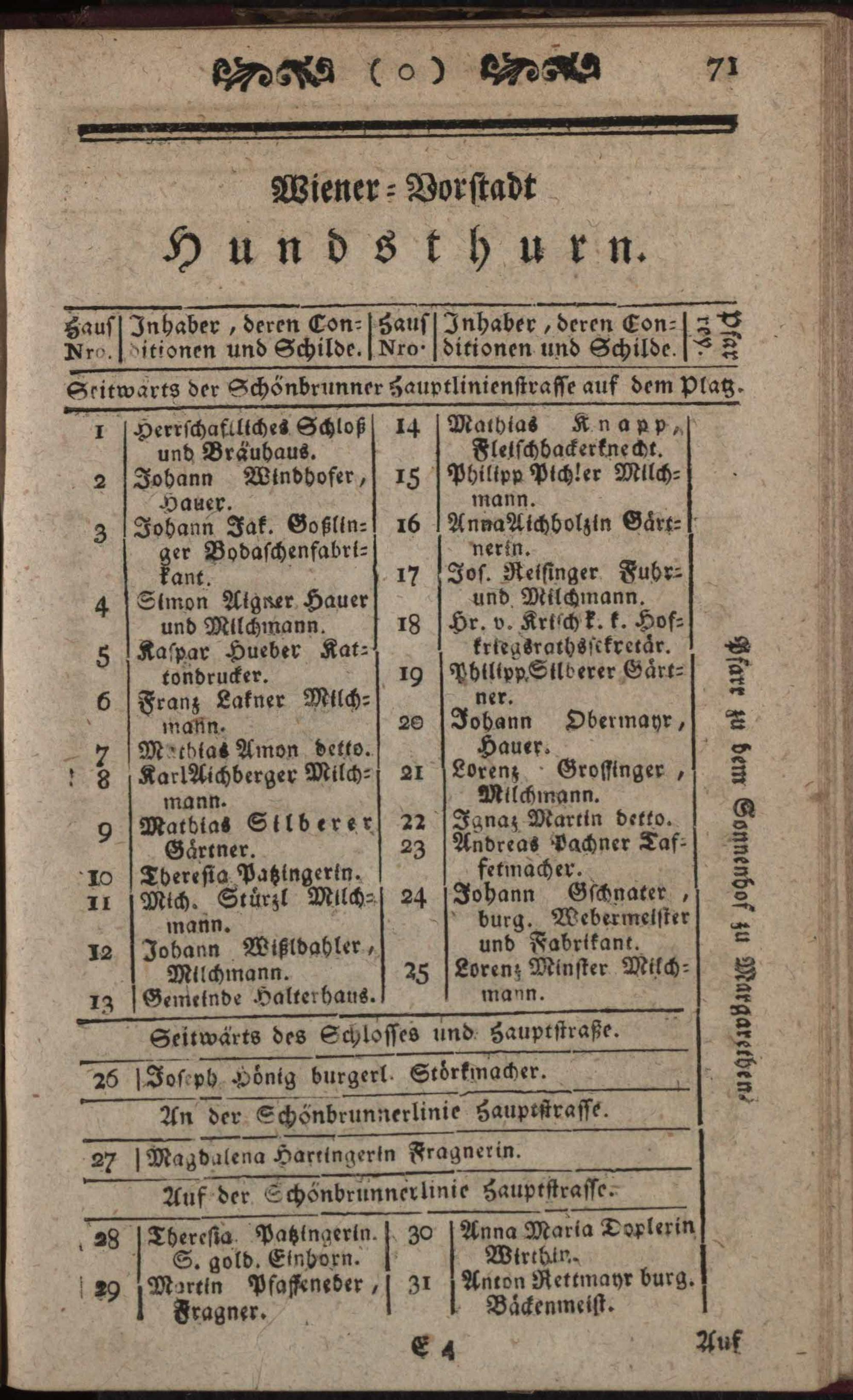 Verzeichniß der in der k. k. Haupt- und Residenzstadt Wien samt den dazu gehörigen Vorstädten und Gründen befindlichen numerirten Häuser, derselben wahrhaften Eigenthümer, deren Konditionen und Schilder : nebst der nach allerhöchster k. k. Verordnung ergangenen neuen Pfarreintheilung ; Auf das genaueste nach den Konskriptions- und herrschaftlichen Grundbüchern von neuem entworfen / von Karl Hofer