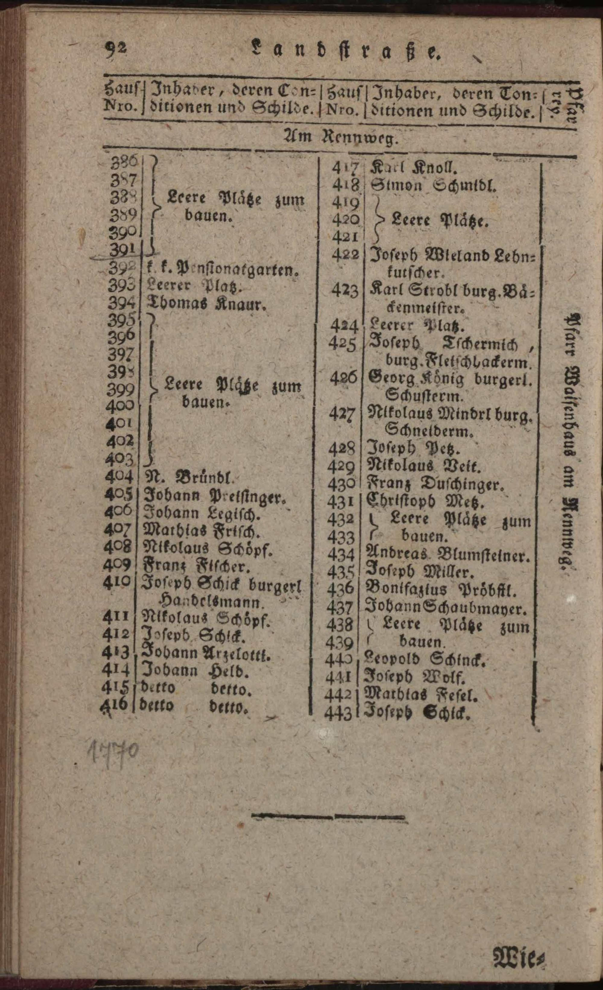 Verzeichniß der in der k. k. Haupt- und Residenzstadt Wien samt den dazu gehörigen Vorstädten und Gründen befindlichen numerirten Häuser, derselben wahrhaften Eigenthümer, deren Konditionen und Schilder : nebst der nach allerhöchster k. k. Verordnung ergangenen neuen Pfarreintheilung ; Auf das genaueste nach den Konskriptions- und herrschaftlichen Grundbüchern von neuem entworfen / von Karl Hofer