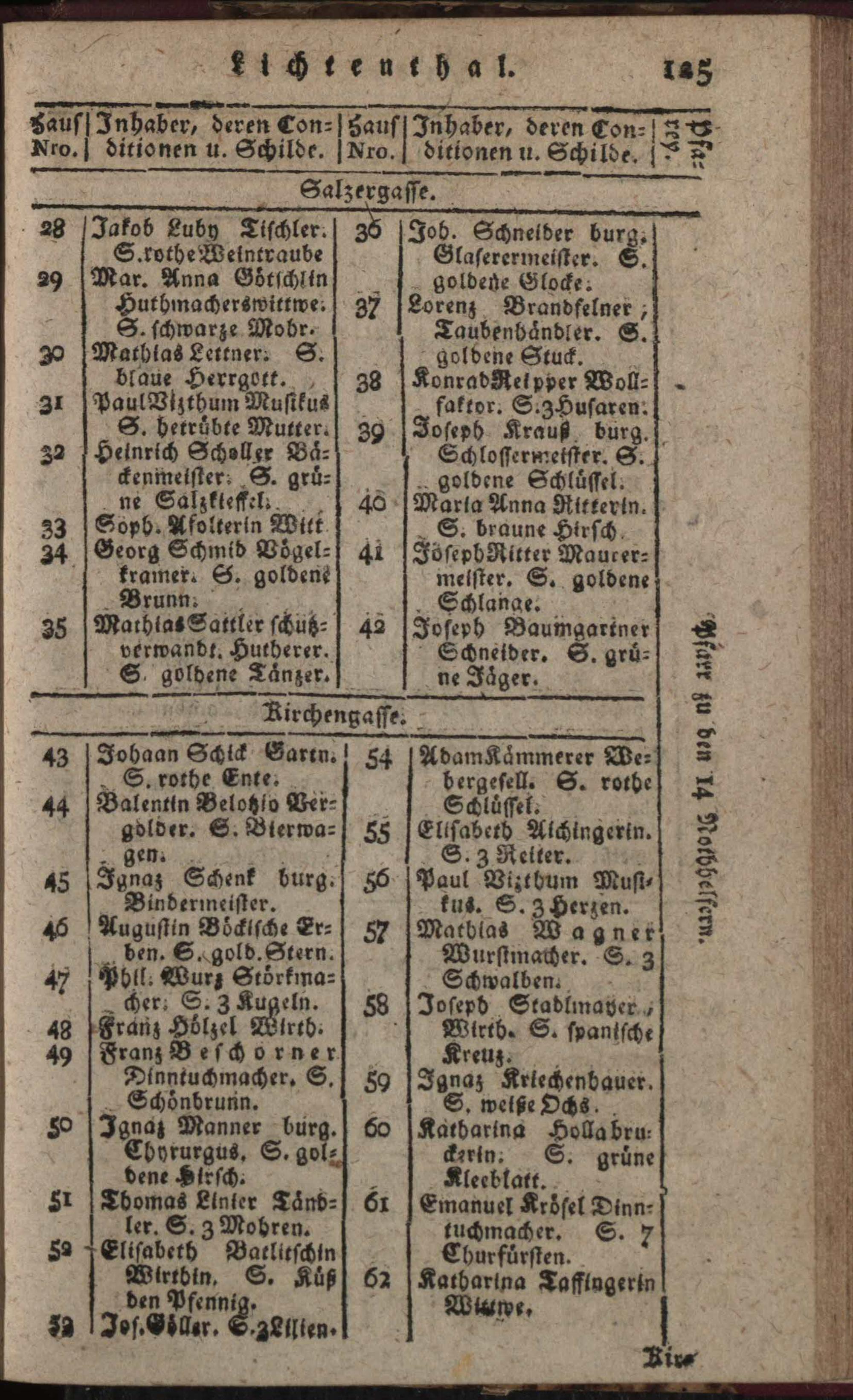 Verzeichniß der in der k. k. Haupt- und Residenzstadt Wien samt den dazu gehörigen Vorstädten und Gründen befindlichen numerirten Häuser, derselben wahrhaften Eigenthümer, deren Konditionen und Schilder : nebst der nach allerhöchster k. k. Verordnung ergangenen neuen Pfarreintheilung ; Auf das genaueste nach den Konskriptions- und herrschaftlichen Grundbüchern von neuem entworfen / von Karl Hofer