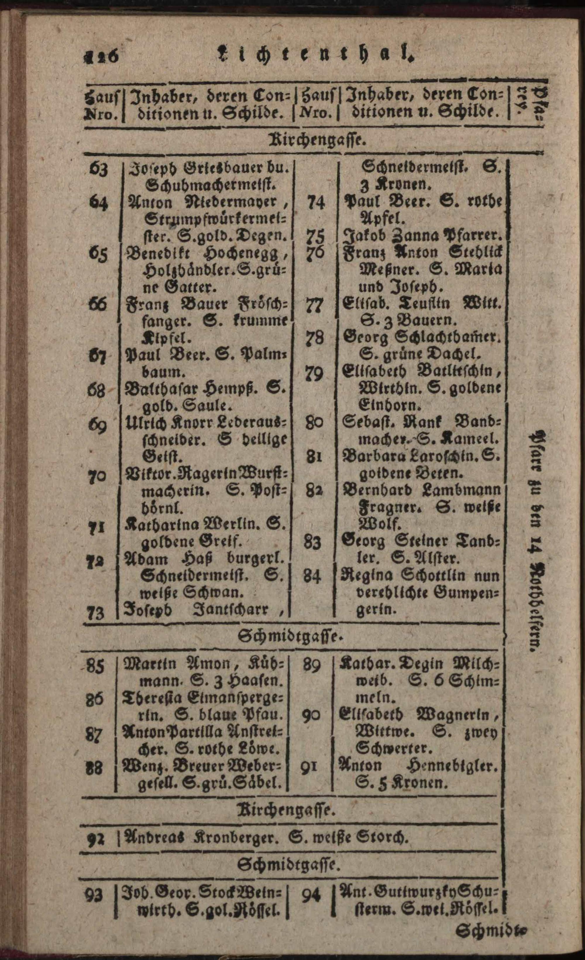 Verzeichniß der in der k. k. Haupt- und Residenzstadt Wien samt den dazu gehörigen Vorstädten und Gründen befindlichen numerirten Häuser, derselben wahrhaften Eigenthümer, deren Konditionen und Schilder : nebst der nach allerhöchster k. k. Verordnung ergangenen neuen Pfarreintheilung ; Auf das genaueste nach den Konskriptions- und herrschaftlichen Grundbüchern von neuem entworfen / von Karl Hofer