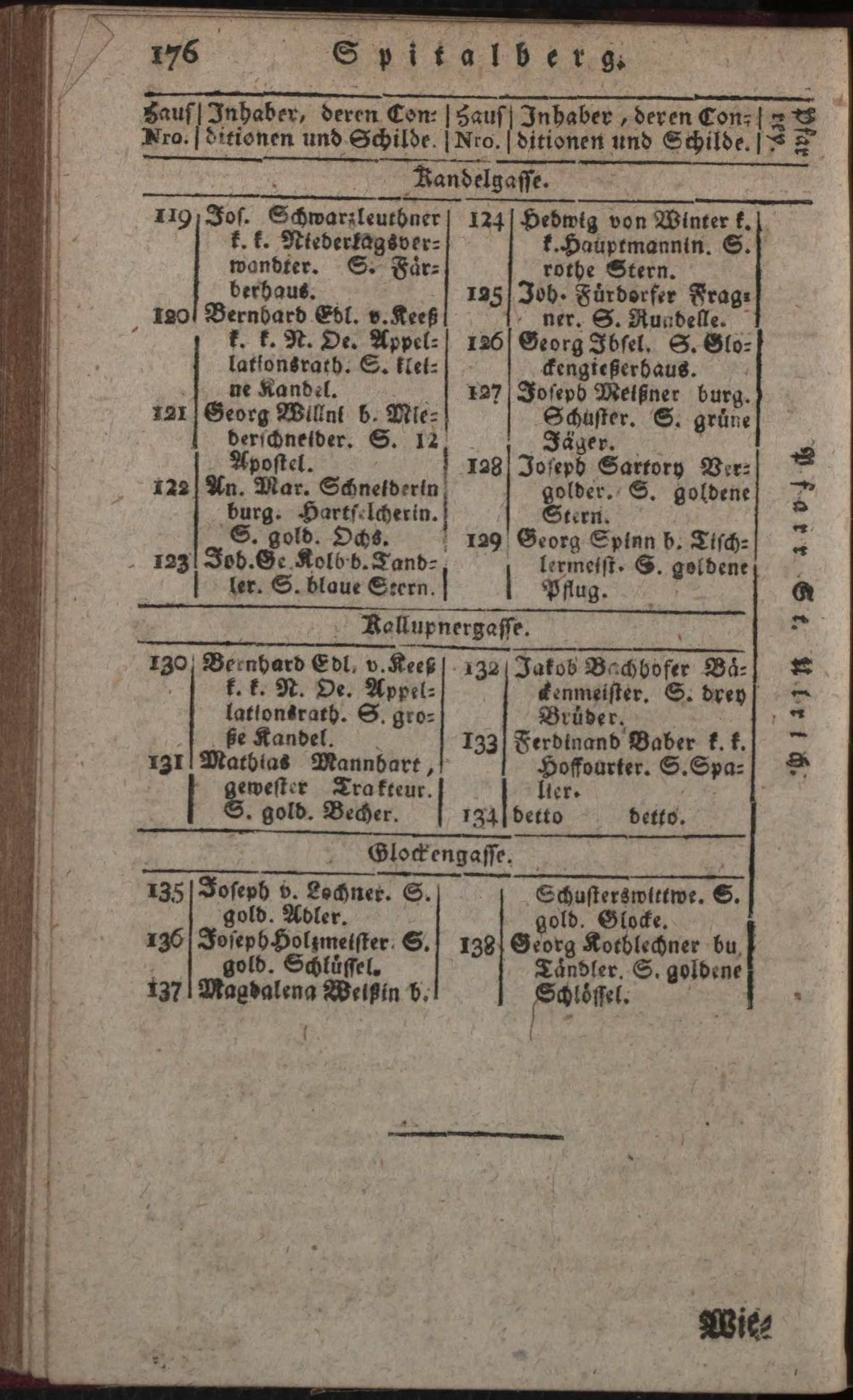 Verzeichniß der in der k. k. Haupt- und Residenzstadt Wien samt den dazu gehörigen Vorstädten und Gründen befindlichen numerirten Häuser, derselben wahrhaften Eigenthümer, deren Konditionen und Schilder : nebst der nach allerhöchster k. k. Verordnung ergangenen neuen Pfarreintheilung ; Auf das genaueste nach den Konskriptions- und herrschaftlichen Grundbüchern von neuem entworfen / von Karl Hofer