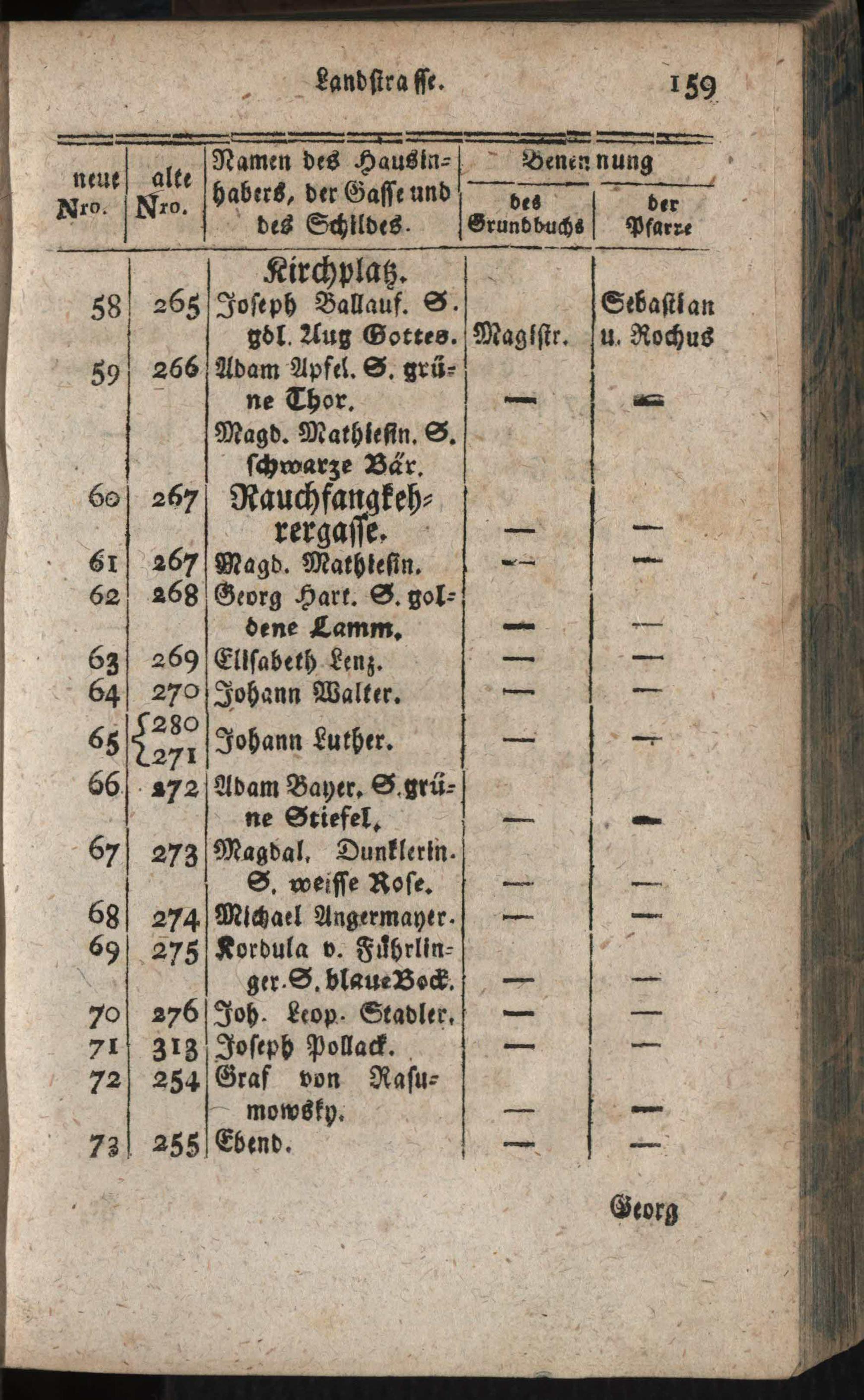 Verzeichniß aller in der k. k. Haupt- und Residenz-Stadt Wien inner denen Linien befindlichen numerirten Häuser : mit alt und neuen Nummern, derselben Eigenthümer, Gassen, Strassen, Plätze und Schilde: mit genauer Anzeige des Grundbuches und der Pfarre ; Nebst einem Anhange: Vollständiges Verzeichniß aller Grund- und Dorfobrigkeiten, Benennung der Grundbücher ...