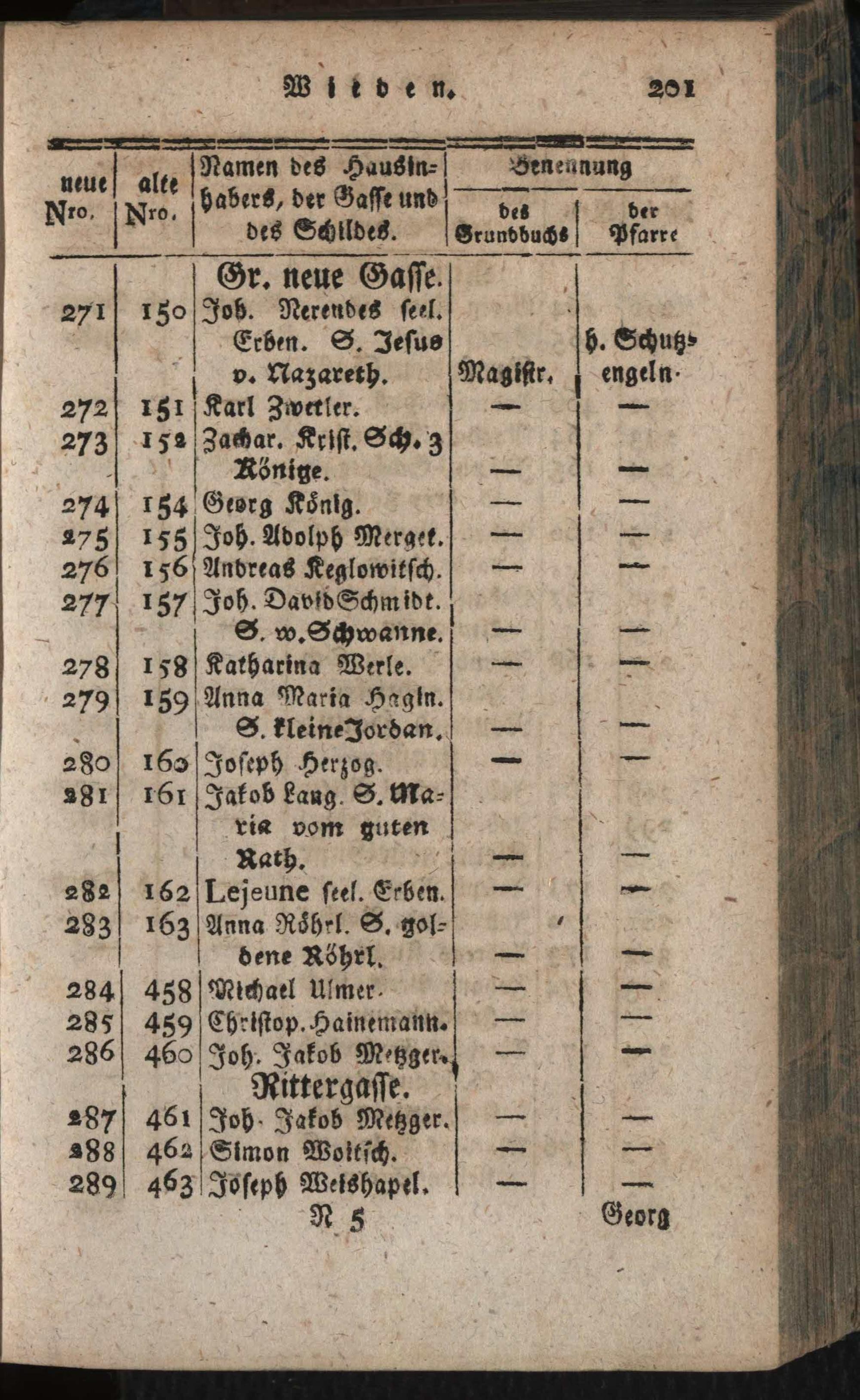 Verzeichniß aller in der k. k. Haupt- und Residenz-Stadt Wien inner denen Linien befindlichen numerirten Häuser : mit alt und neuen Nummern, derselben Eigenthümer, Gassen, Strassen, Plätze und Schilde: mit genauer Anzeige des Grundbuches und der Pfarre ; Nebst einem Anhange: Vollständiges Verzeichniß aller Grund- und Dorfobrigkeiten, Benennung der Grundbücher ...