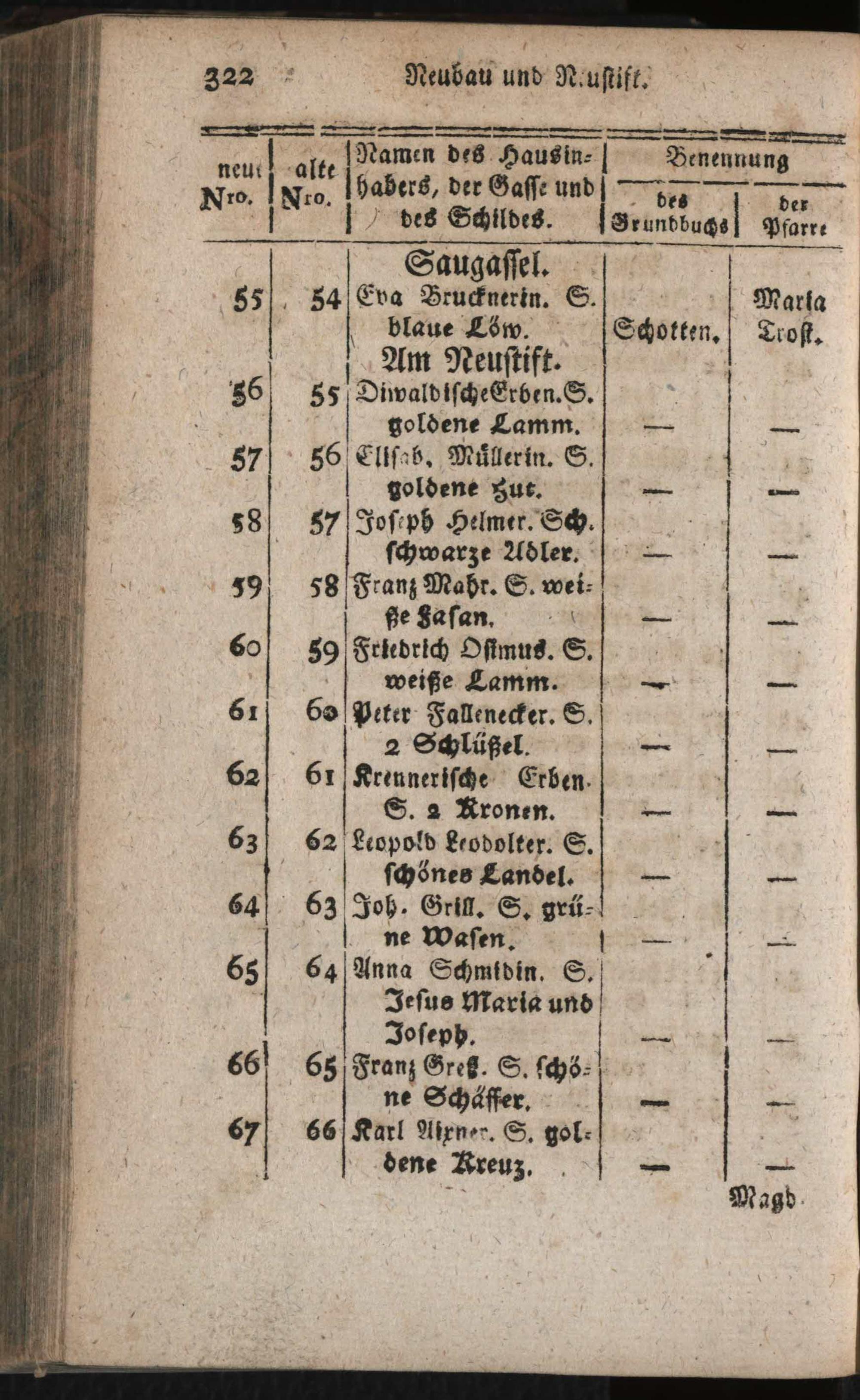 Verzeichniß aller in der k. k. Haupt- und Residenz-Stadt Wien inner denen Linien befindlichen numerirten Häuser : mit alt und neuen Nummern, derselben Eigenthümer, Gassen, Strassen, Plätze und Schilde: mit genauer Anzeige des Grundbuches und der Pfarre ; Nebst einem Anhange: Vollständiges Verzeichniß aller Grund- und Dorfobrigkeiten, Benennung der Grundbücher ...