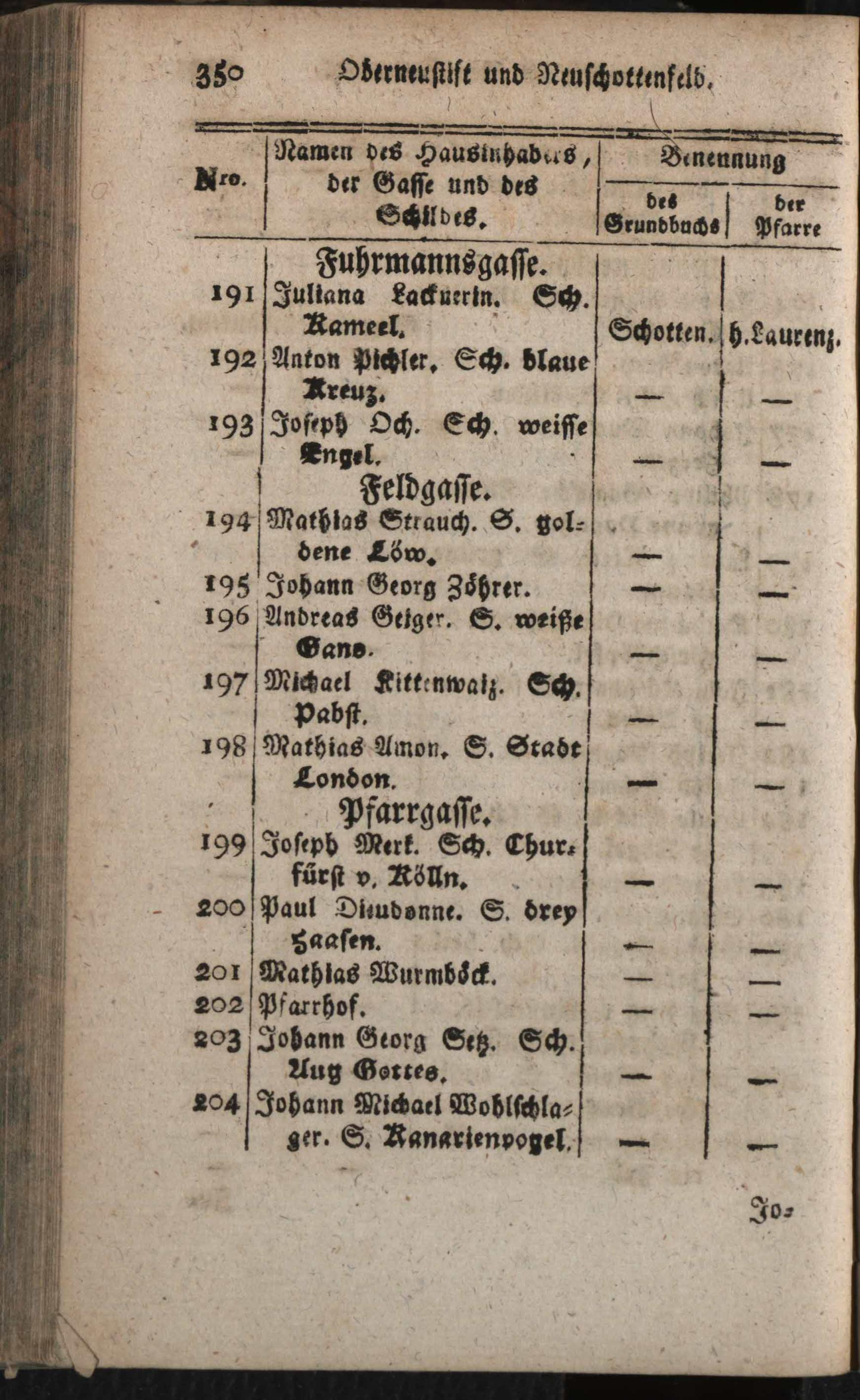 Verzeichniß aller in der k. k. Haupt- und Residenz-Stadt Wien inner denen Linien befindlichen numerirten Häuser : mit alt und neuen Nummern, derselben Eigenthümer, Gassen, Strassen, Plätze und Schilde: mit genauer Anzeige des Grundbuches und der Pfarre ; Nebst einem Anhange: Vollständiges Verzeichniß aller Grund- und Dorfobrigkeiten, Benennung der Grundbücher ...