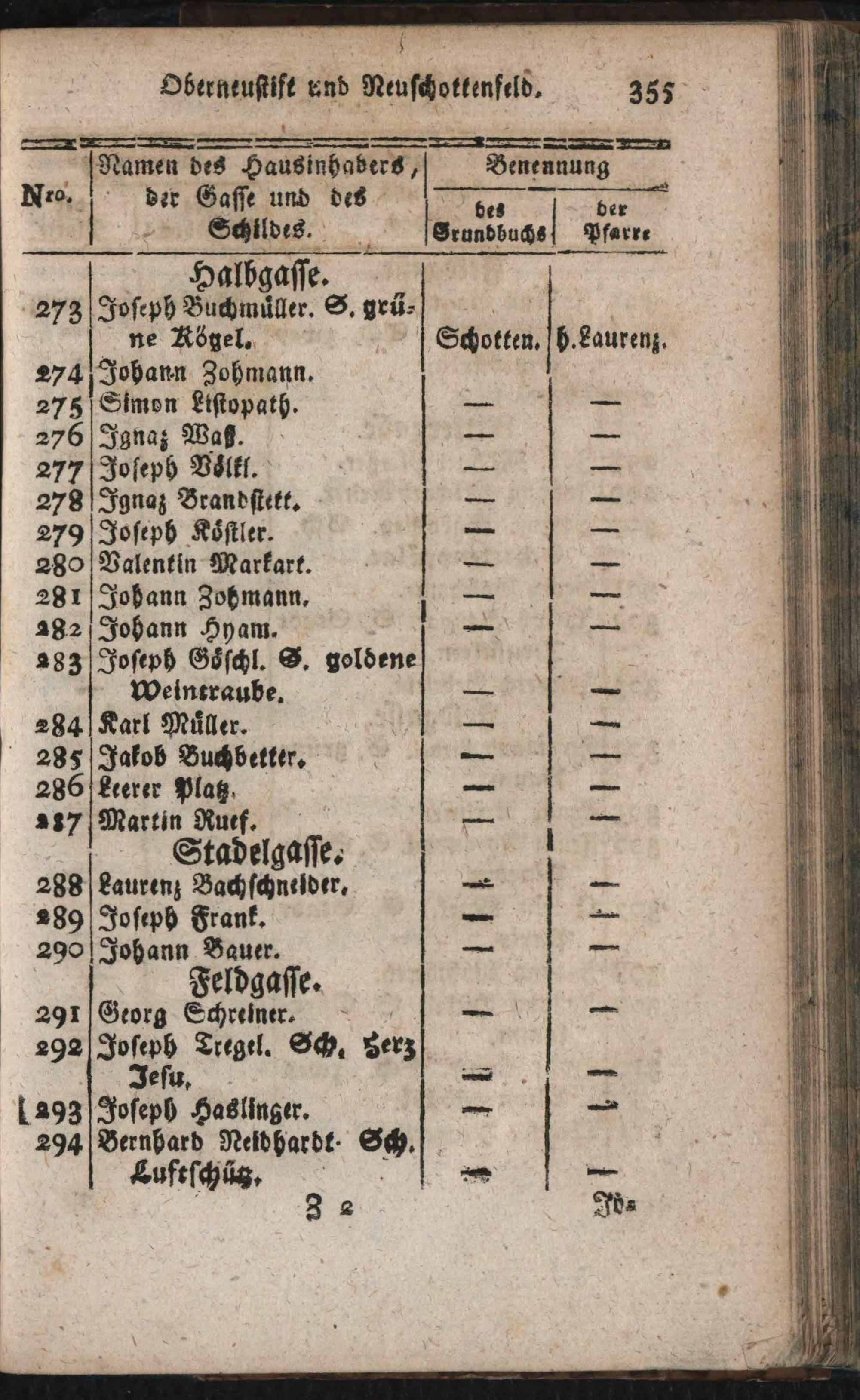 Verzeichniß aller in der k. k. Haupt- und Residenz-Stadt Wien inner denen Linien befindlichen numerirten Häuser : mit alt und neuen Nummern, derselben Eigenthümer, Gassen, Strassen, Plätze und Schilde: mit genauer Anzeige des Grundbuches und der Pfarre ; Nebst einem Anhange: Vollständiges Verzeichniß aller Grund- und Dorfobrigkeiten, Benennung der Grundbücher ...