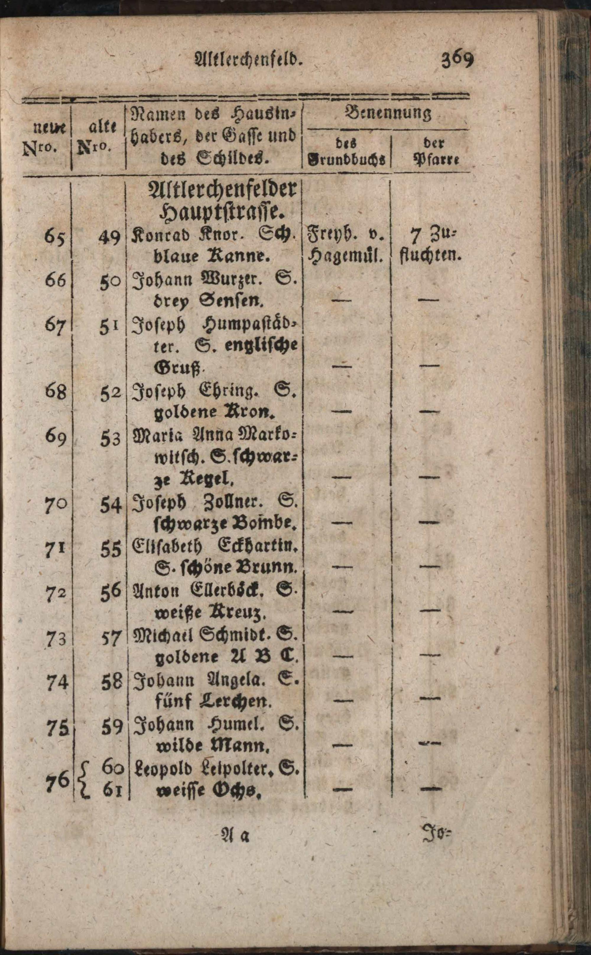 Verzeichniß aller in der k. k. Haupt- und Residenz-Stadt Wien inner denen Linien befindlichen numerirten Häuser : mit alt und neuen Nummern, derselben Eigenthümer, Gassen, Strassen, Plätze und Schilde: mit genauer Anzeige des Grundbuches und der Pfarre ; Nebst einem Anhange: Vollständiges Verzeichniß aller Grund- und Dorfobrigkeiten, Benennung der Grundbücher ...