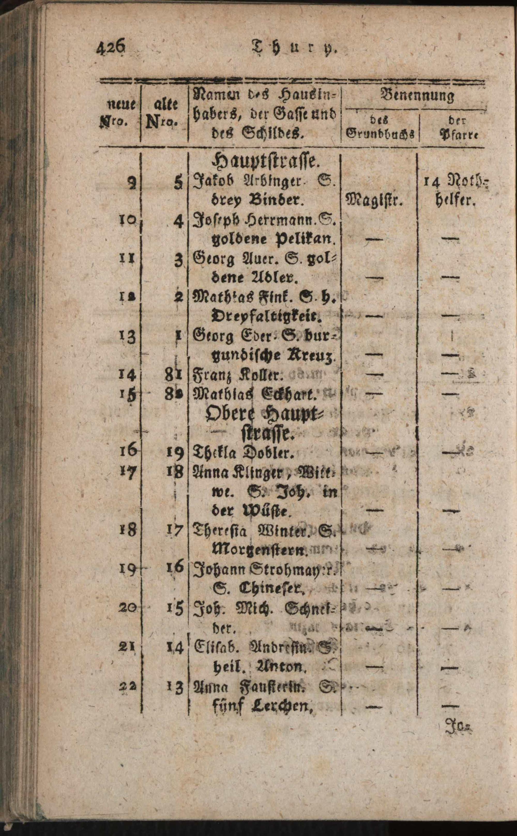 Verzeichniß aller in der k. k. Haupt- und Residenz-Stadt Wien inner denen Linien befindlichen numerirten Häuser : mit alt und neuen Nummern, derselben Eigenthümer, Gassen, Strassen, Plätze und Schilde: mit genauer Anzeige des Grundbuches und der Pfarre ; Nebst einem Anhange: Vollständiges Verzeichniß aller Grund- und Dorfobrigkeiten, Benennung der Grundbücher ...