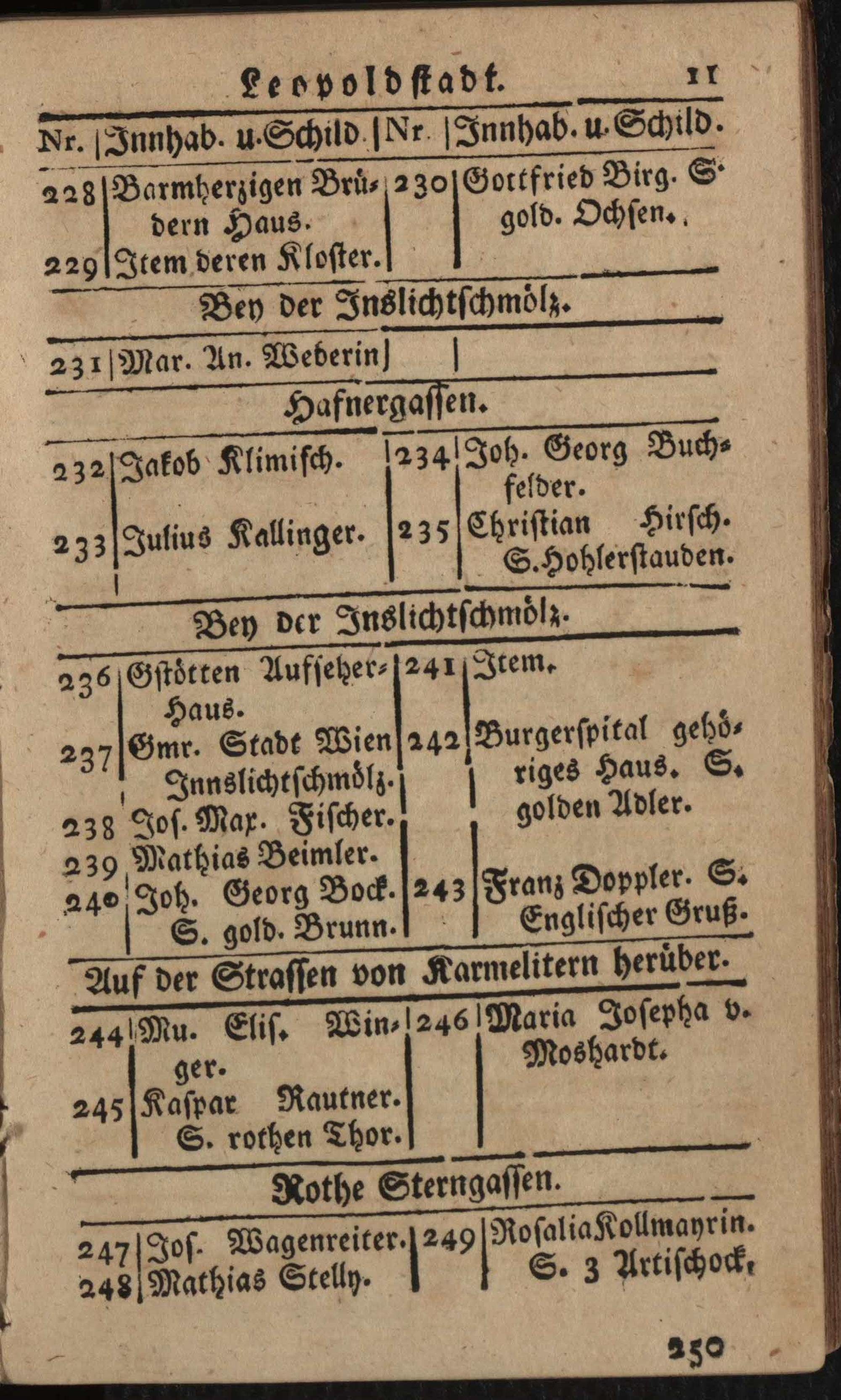 Verzeichniß der um die k.k. Haupt- und Residenzstadt Wien befindlichen Vorstädten, Gründen, Gässen, numerirten Häuser, Innhaber, und ihrer Schilde