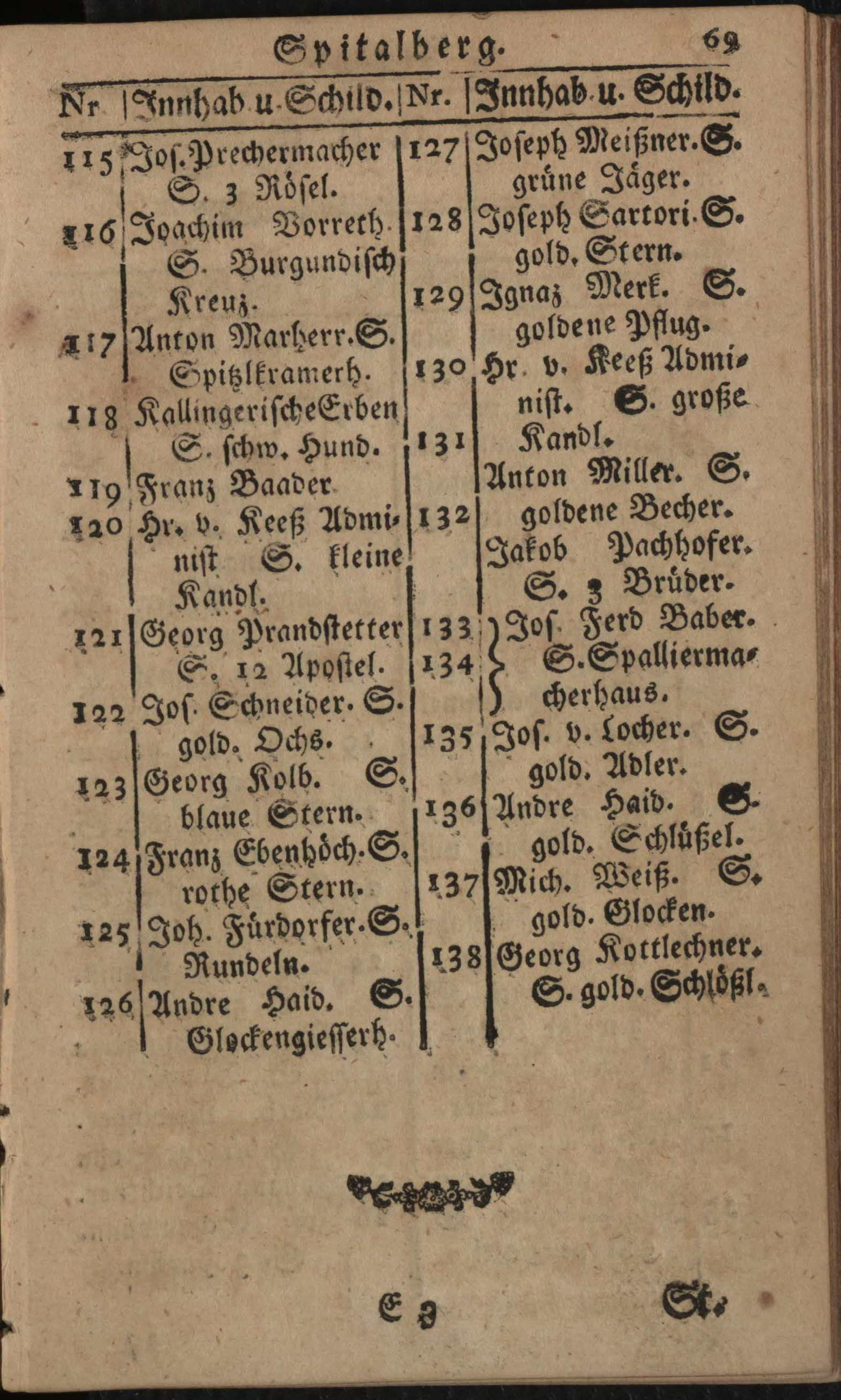 Verzeichniß der um die k.k. Haupt- und Residenzstadt Wien befindlichen Vorstädten, Gründen, Gässen, numerirten Häuser, Innhaber, und ihrer Schilde