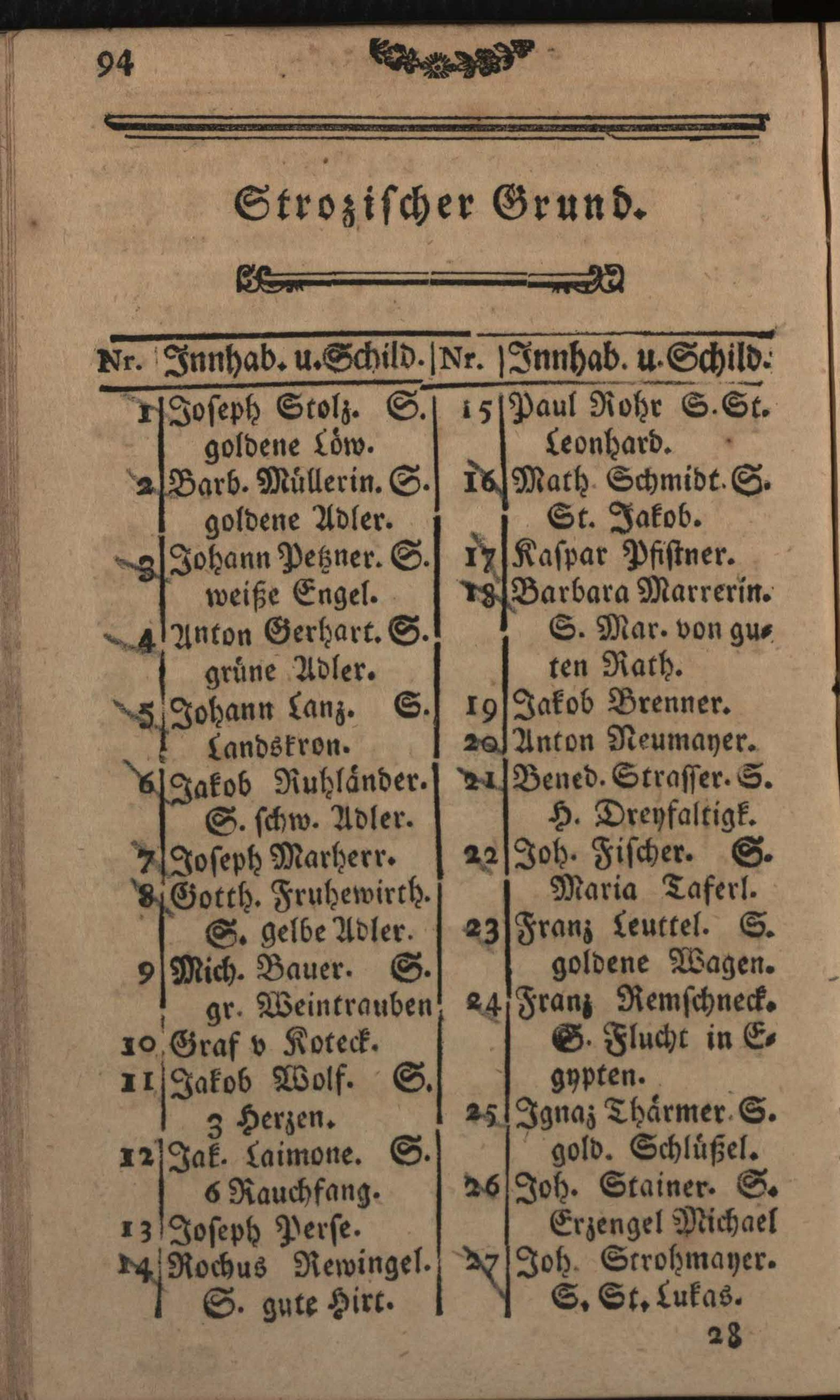 Verzeichniß der um die k.k. Haupt- und Residenzstadt Wien befindlichen Vorstädten, Gründen, Gässen, numerirten Häuser, Innhaber, und ihrer Schilde