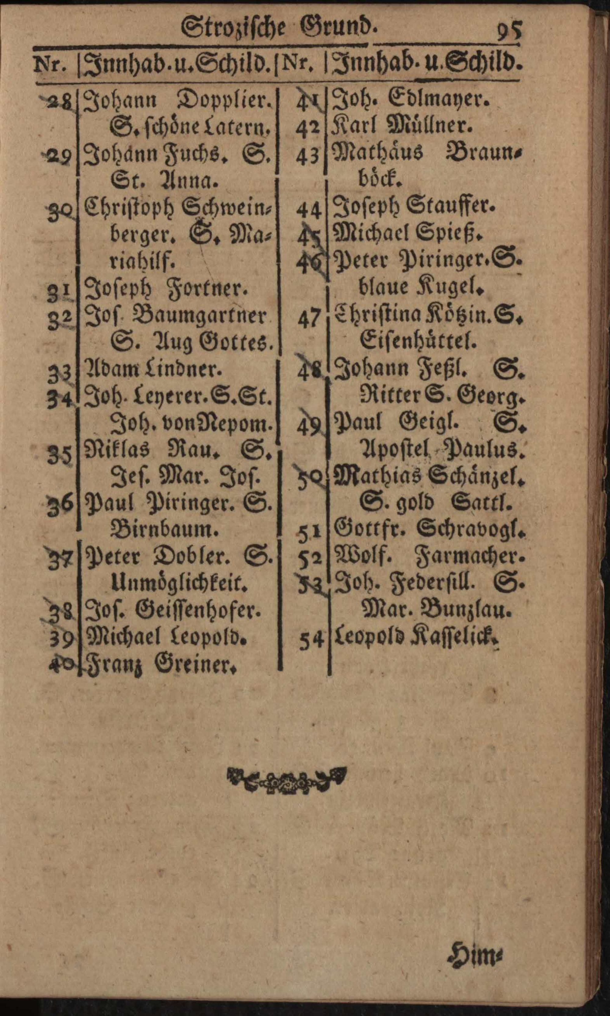 Verzeichniß der um die k.k. Haupt- und Residenzstadt Wien befindlichen Vorstädten, Gründen, Gässen, numerirten Häuser, Innhaber, und ihrer Schilde