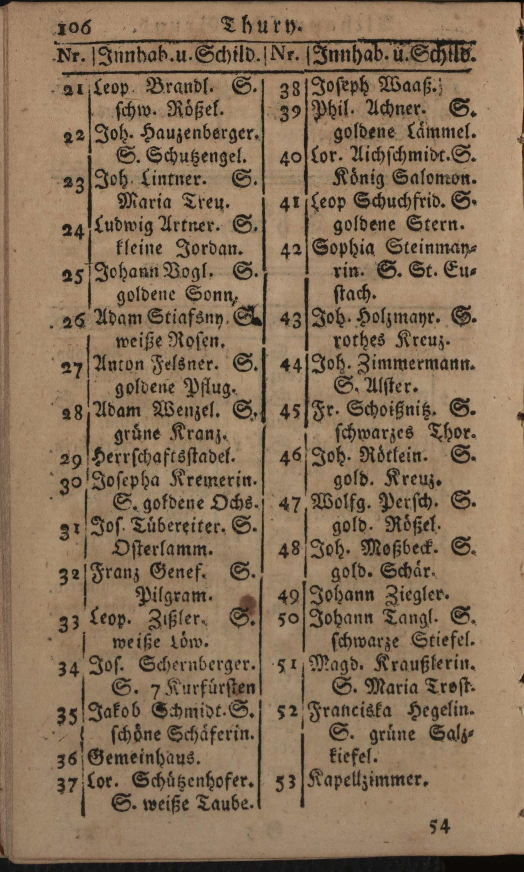 Verzeichniß der um die k.k. Haupt- und Residenzstadt Wien befindlichen Vorstädten, Gründen, Gässen, numerirten Häuser, Innhaber, und ihrer Schilde