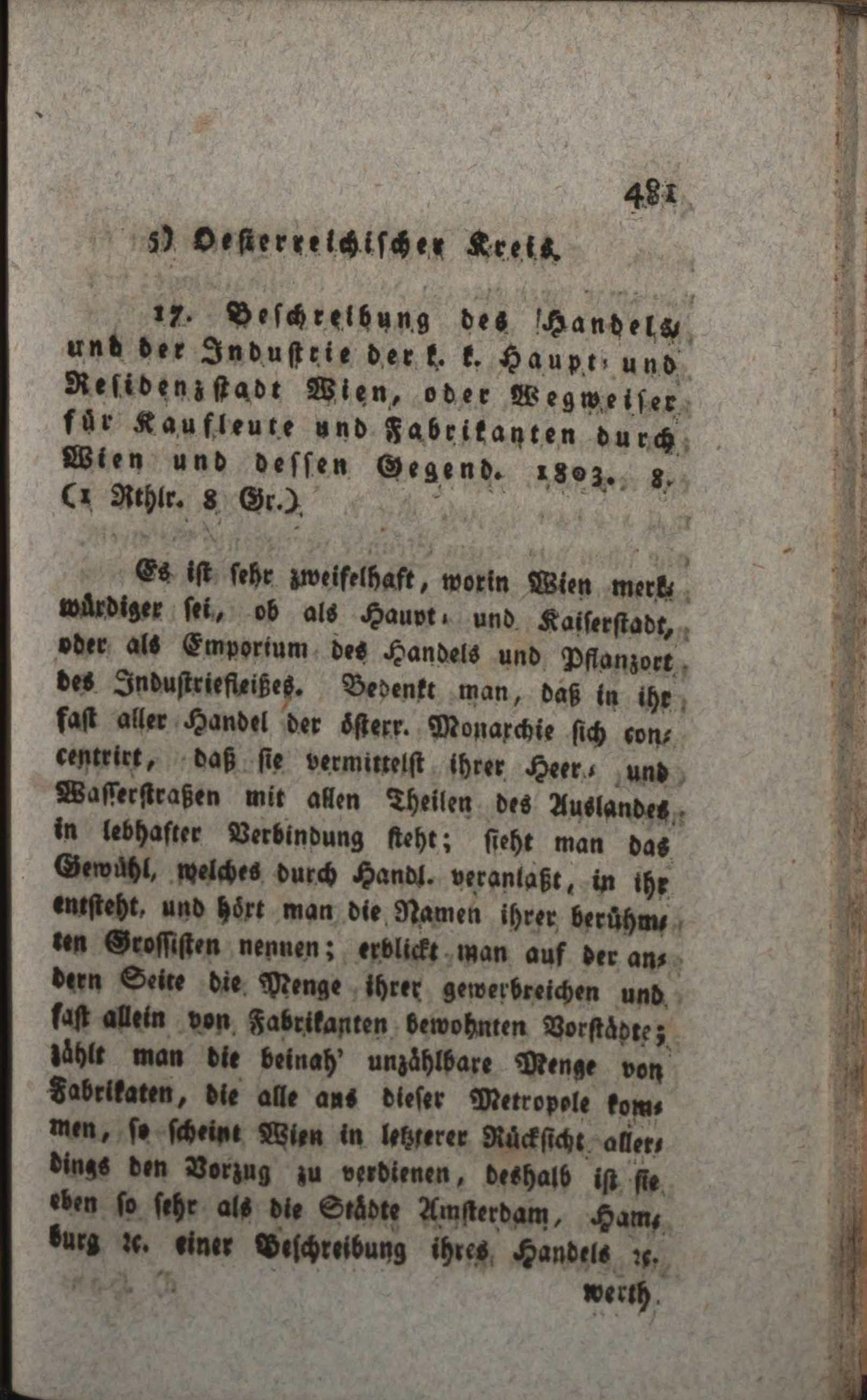 Beschreibung der Handlung und des Industriefleißes der k.k. Haupt- und Residenzstadt Wien : oder: merkantilischer Wegweiser durch Wien und das Erzherzogth. Oesterreich