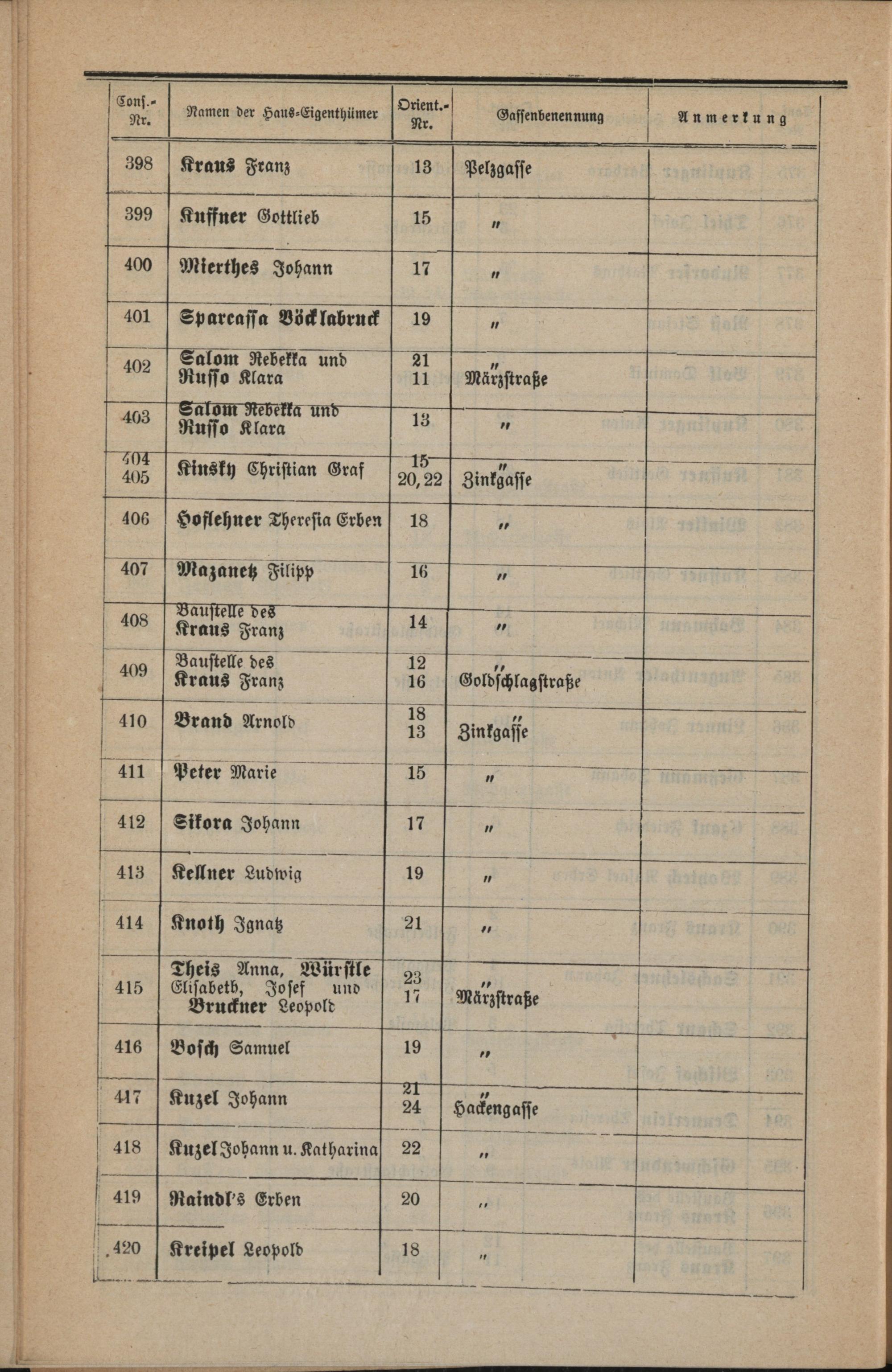 Häuser-Schema der Gemeinde Fünfhaus