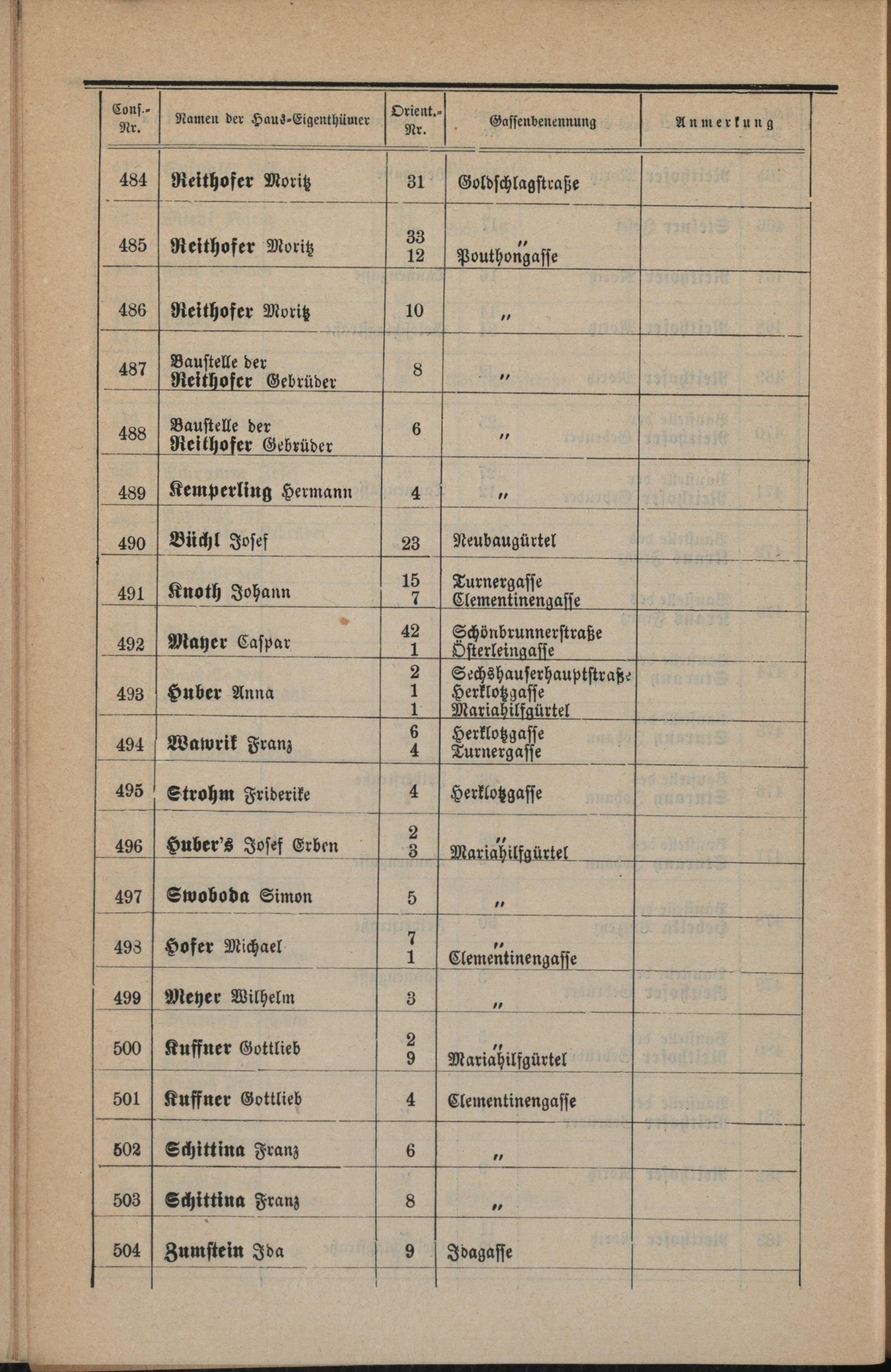 Häuser-Schema der Gemeinde Fünfhaus
