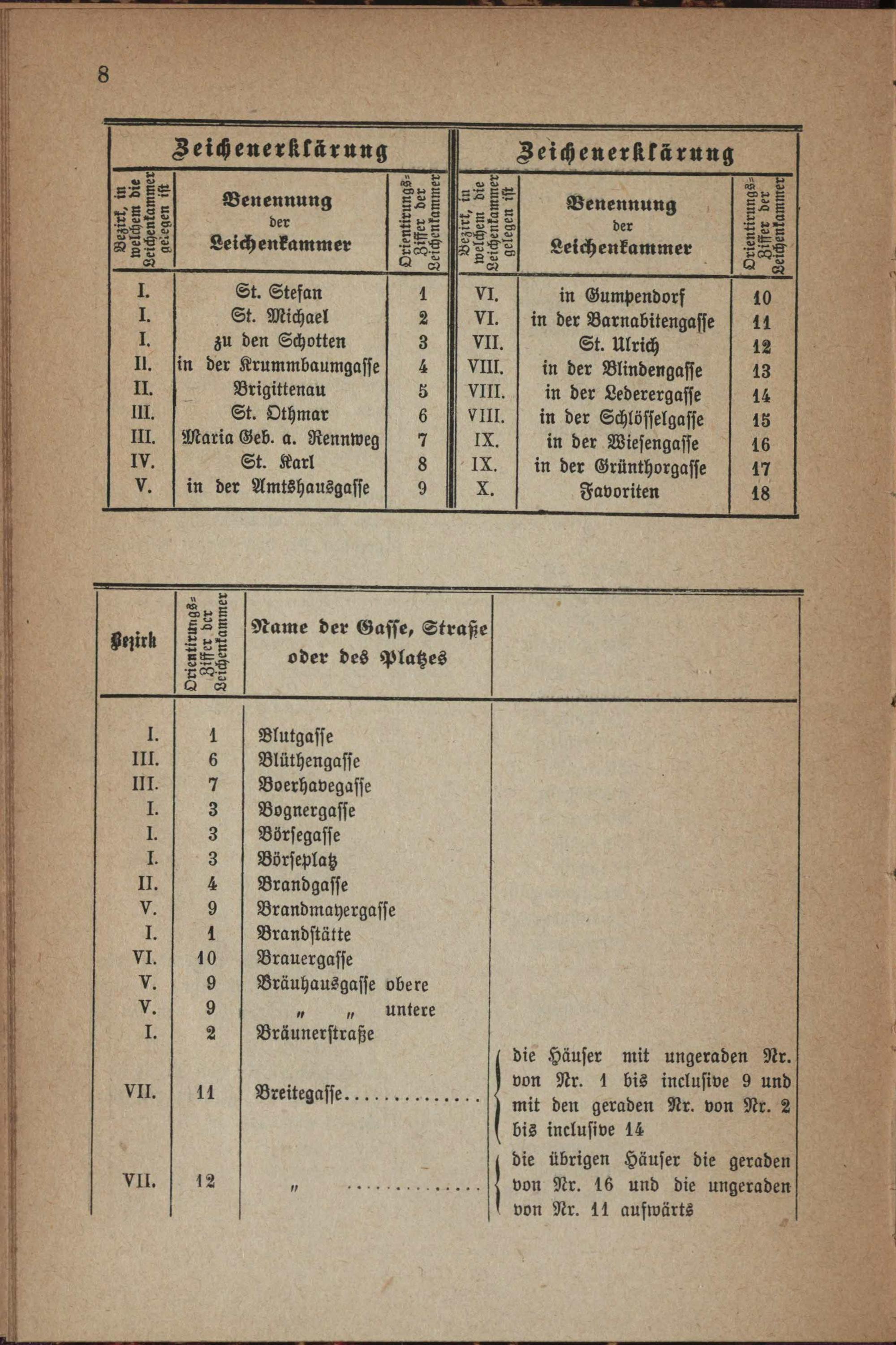 Alphabetisches Verzeichniß der Plätze, Straßen und Gassen der Stadt Wien mit der Angabe der zugehörigen Leichensammelkammern