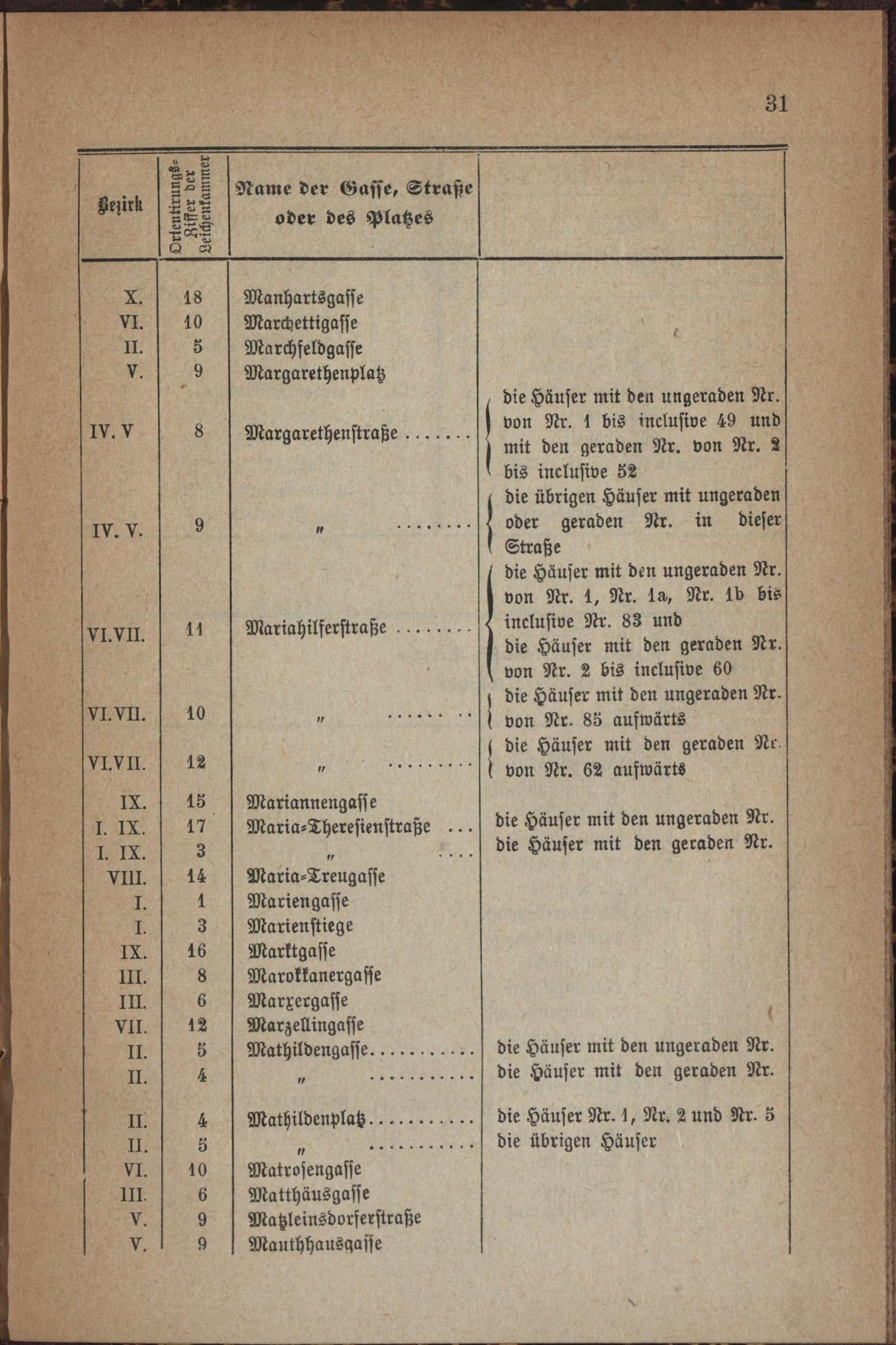 Alphabetisches Verzeichniß der Plätze, Straßen und Gassen der Stadt Wien mit der Angabe der zugehörigen Leichensammelkammern