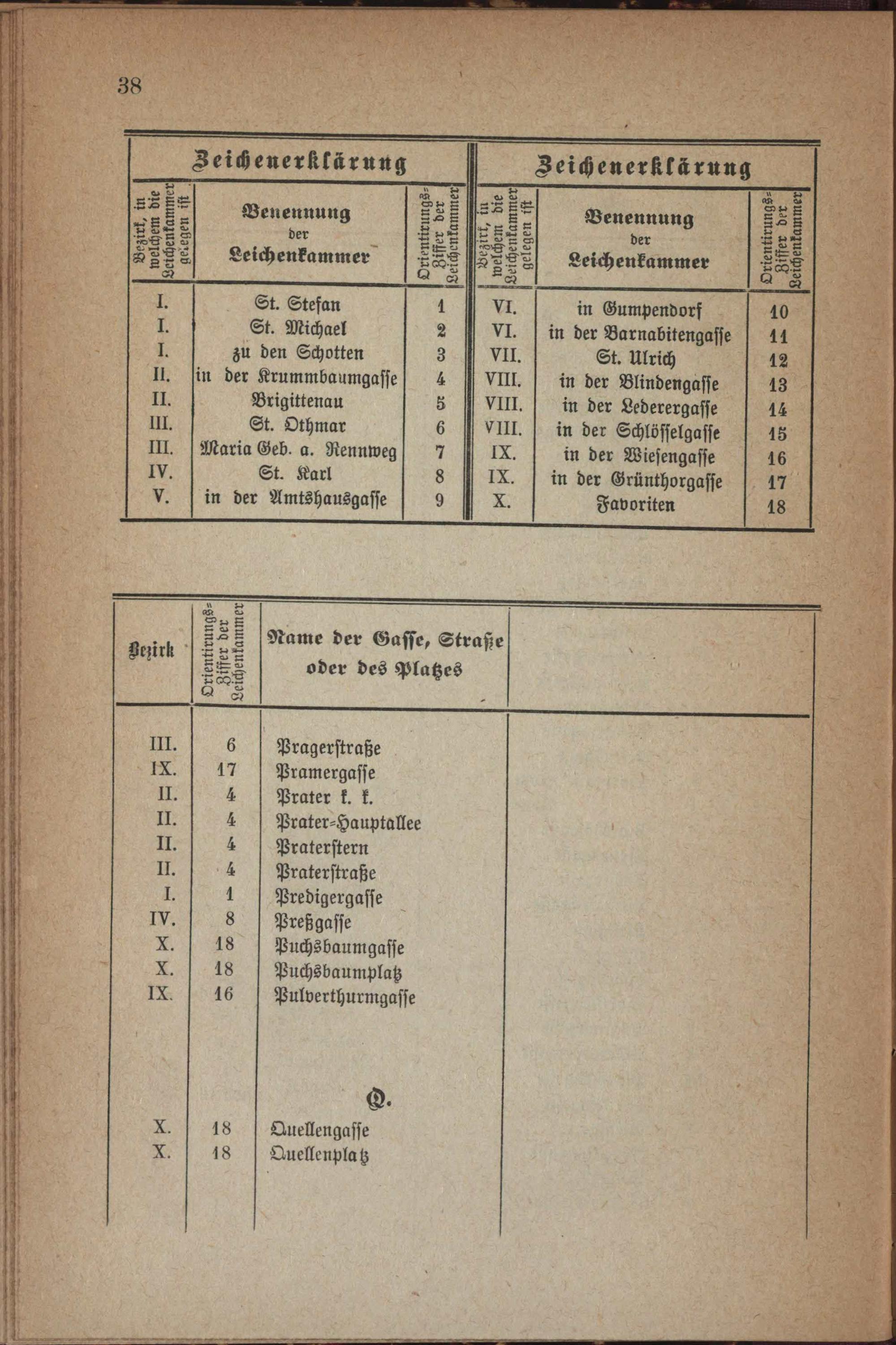 Alphabetisches Verzeichniß der Plätze, Straßen und Gassen der Stadt Wien mit der Angabe der zugehörigen Leichensammelkammern