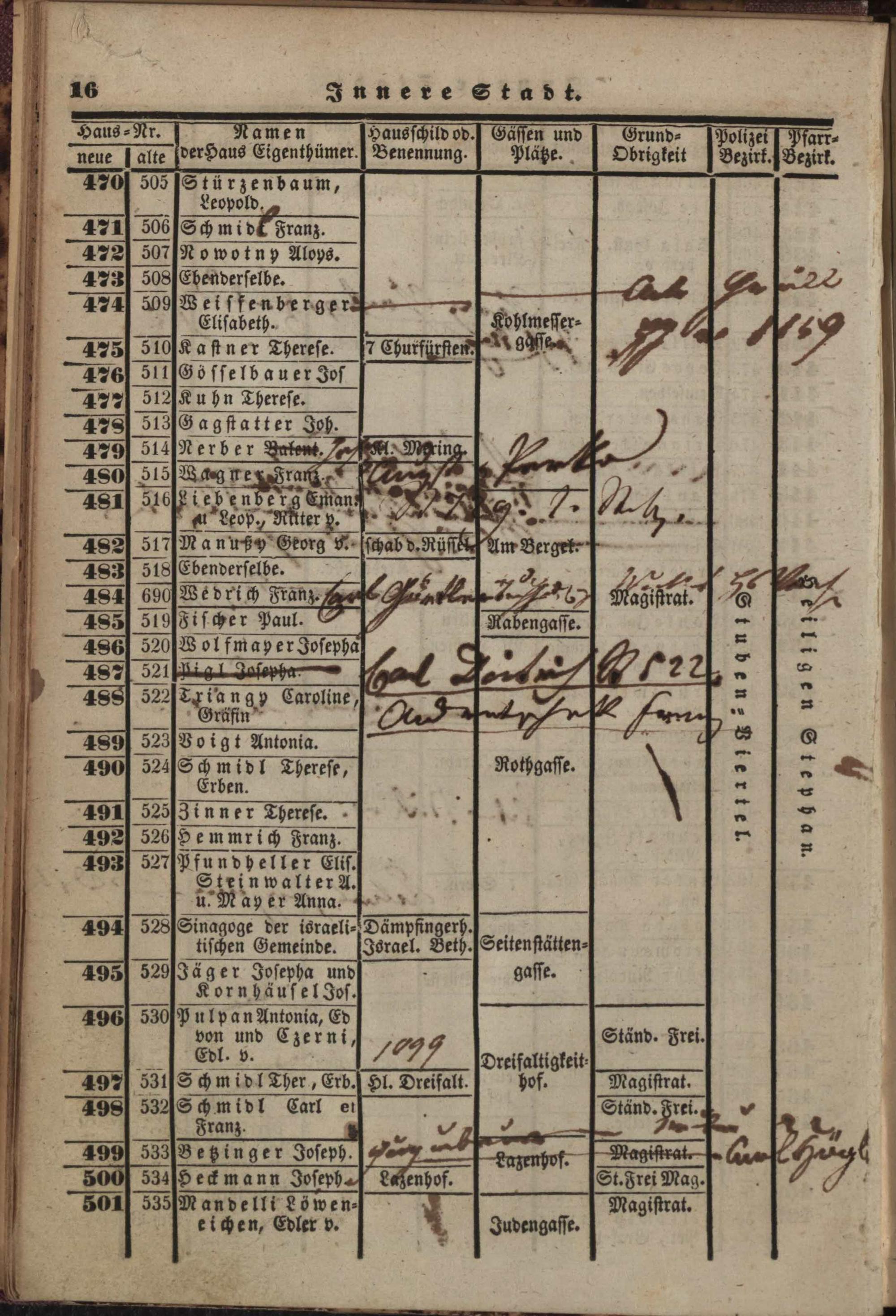 Neuer, verbesserter Häuser-Schema der k. k. Haupt- und Residenzstadt Wien mit ihren 34 Vorstädten, allen Neubauten und den angränzenden nahen Ortschaften, welche noch zu den Polizei-Bezirken Wiens gehören, als: Währing, Herrnals, Neulerchenfeld, Fünf- und Sechshaus, Rustendorf, Braunhirschengrund, Reindorf und Gaudenzdorf : mit genauer Angabe der Haus-Nummern, der Haus-Eigenthümer, Hausschilder, Gässen, Plätze, Grundobrigkeiten, Polizei- und Pfarr-Bezirken, so wie einem alphabetischen Namens-Verzeichnisse sämmtlicher Haus-Eigenthümer ; mit einem neuen Plane der Stadt und sämmtlichen Vorstädten mit den Haus-Nummern / nach den neuesten und zuverläßigsten Quellen bearb. und hrsg. von Carl Schwab