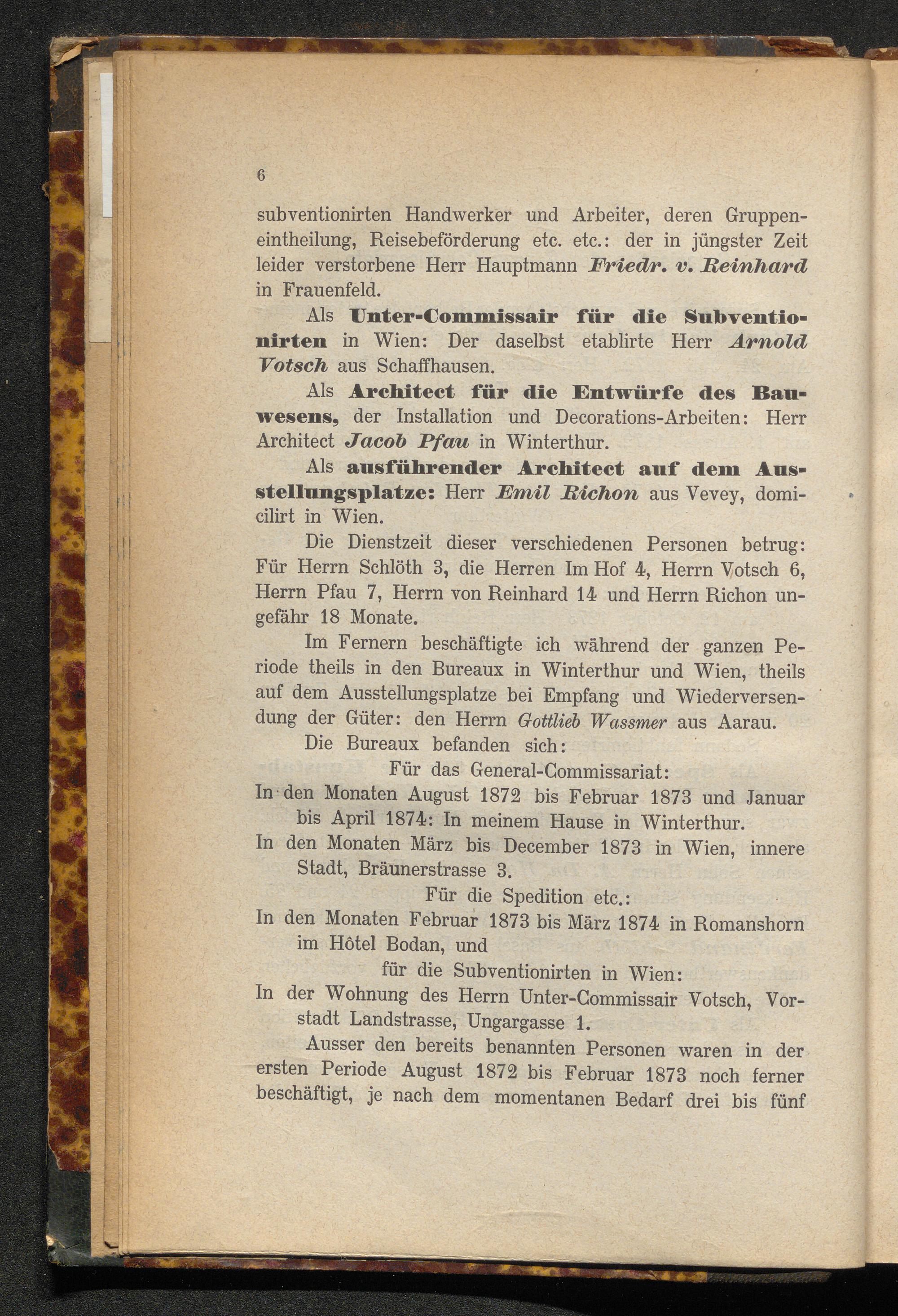 Administrativ-Bericht des Schweizerischen General-Commissairs für die Wiener Weltausstellung des Jahres 1873