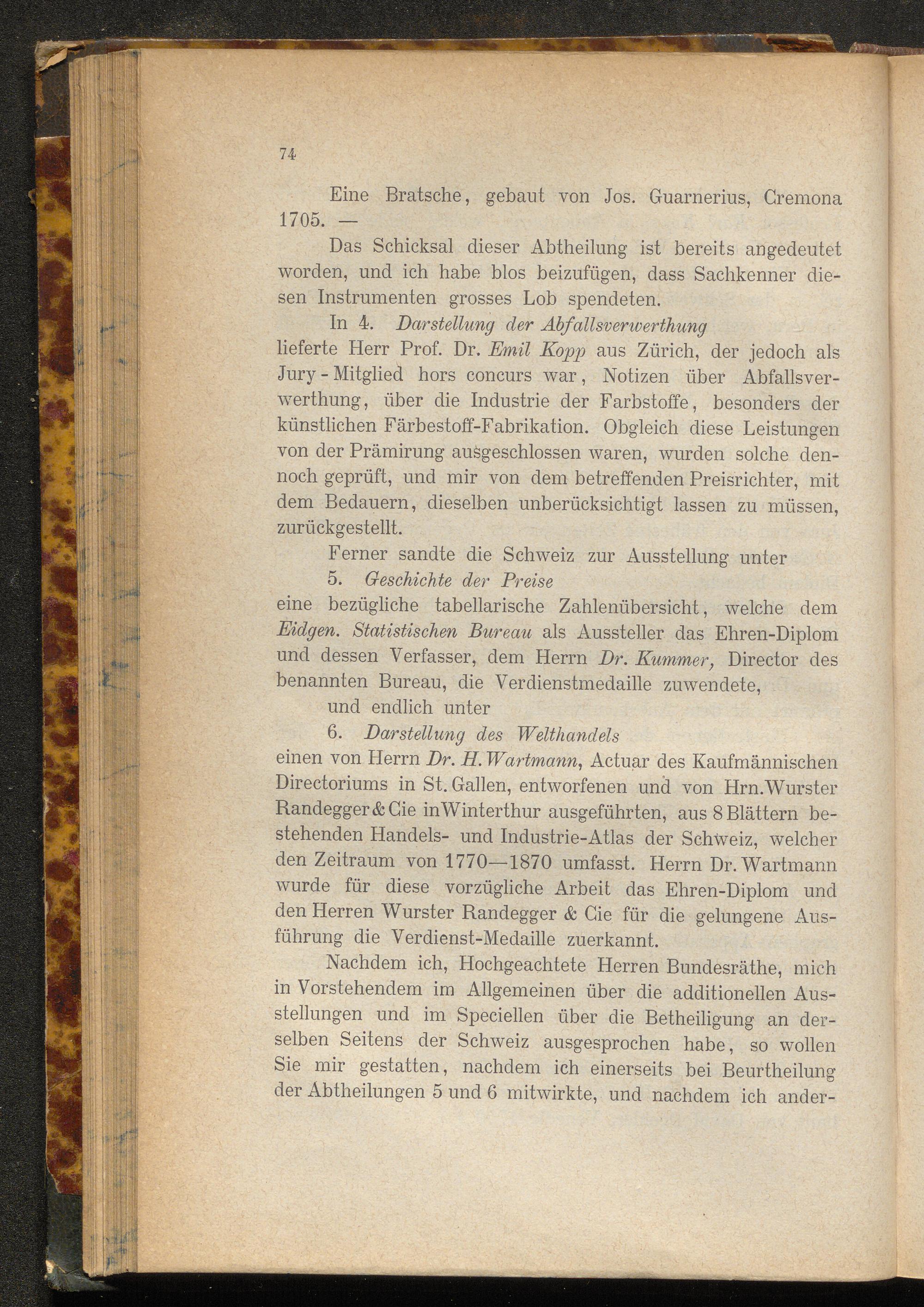 Administrativ-Bericht des Schweizerischen General-Commissairs für die Wiener Weltausstellung des Jahres 1873