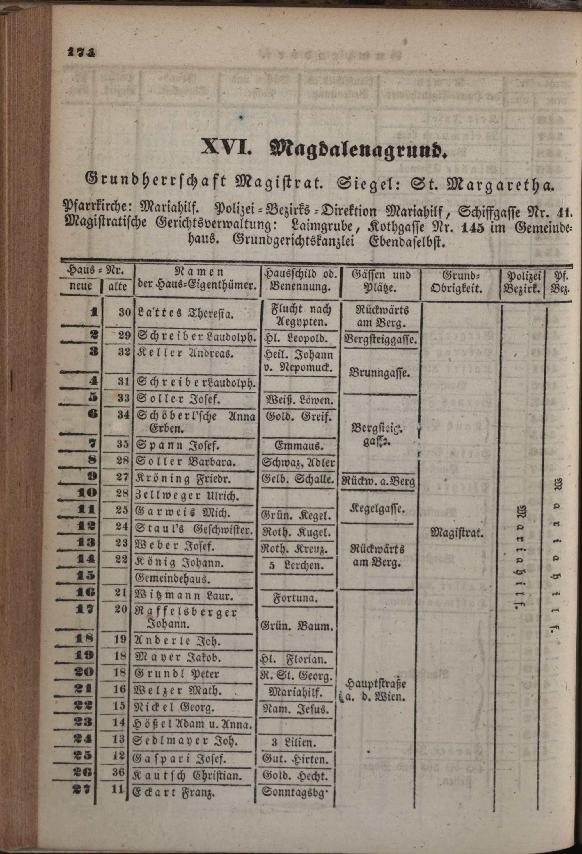 Neuer, verbesserter Häuser-Schema der k. k. Haupt- und Residenzstadt Wien mit ihren 34 Vorstädten, allen Neubauten und den angränzenden nahen Ortschaften, welche noch zu den Polizei-Bezirken Wiens gehören, als: Währing, Herrnals, Neulerchenfeld, Fünf- und Sechshaus, Rustendorf, Braunhirschengrund, Reindorf und Gaudenzdorf : mit genauer Angabe der Haus-Nummern, der Haus-Eigenthümer, Hausschilder, Gässen, Plätze, Grundobrigkeiten, Polizei- und Pfarr-Bezirken, so wie einem alphabetischen Namens-Verzeichnisse sämmtlicher Haus-Eigenthümer ; mit einem neuen Plane der Stadt und sämmtlichen Vorstädten mit den Haus-Nummern / nach den neuesten und zuverläßigsten Quellen bearb. und hrsg. von Carl Schwab