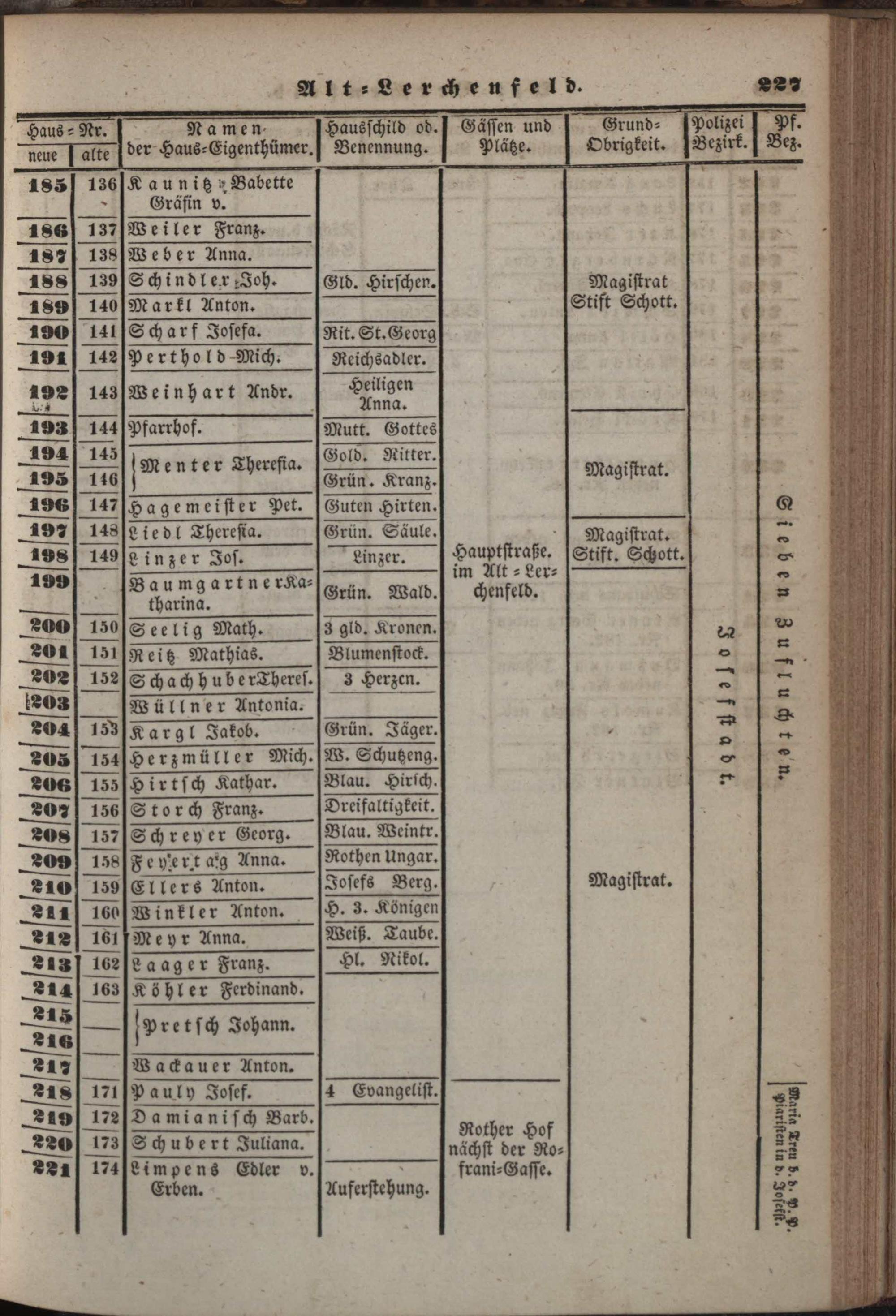 Neuer, verbesserter Häuser-Schema der k. k. Haupt- und Residenzstadt Wien mit ihren 34 Vorstädten, allen Neubauten und den angränzenden nahen Ortschaften, welche noch zu den Polizei-Bezirken Wiens gehören, als: Währing, Herrnals, Neulerchenfeld, Fünf- und Sechshaus, Rustendorf, Braunhirschengrund, Reindorf und Gaudenzdorf : mit genauer Angabe der Haus-Nummern, der Haus-Eigenthümer, Hausschilder, Gässen, Plätze, Grundobrigkeiten, Polizei- und Pfarr-Bezirken, so wie einem alphabetischen Namens-Verzeichnisse sämmtlicher Haus-Eigenthümer ; mit einem neuen Plane der Stadt und sämmtlichen Vorstädten mit den Haus-Nummern / nach den neuesten und zuverläßigsten Quellen bearb. und hrsg. von Carl Schwab