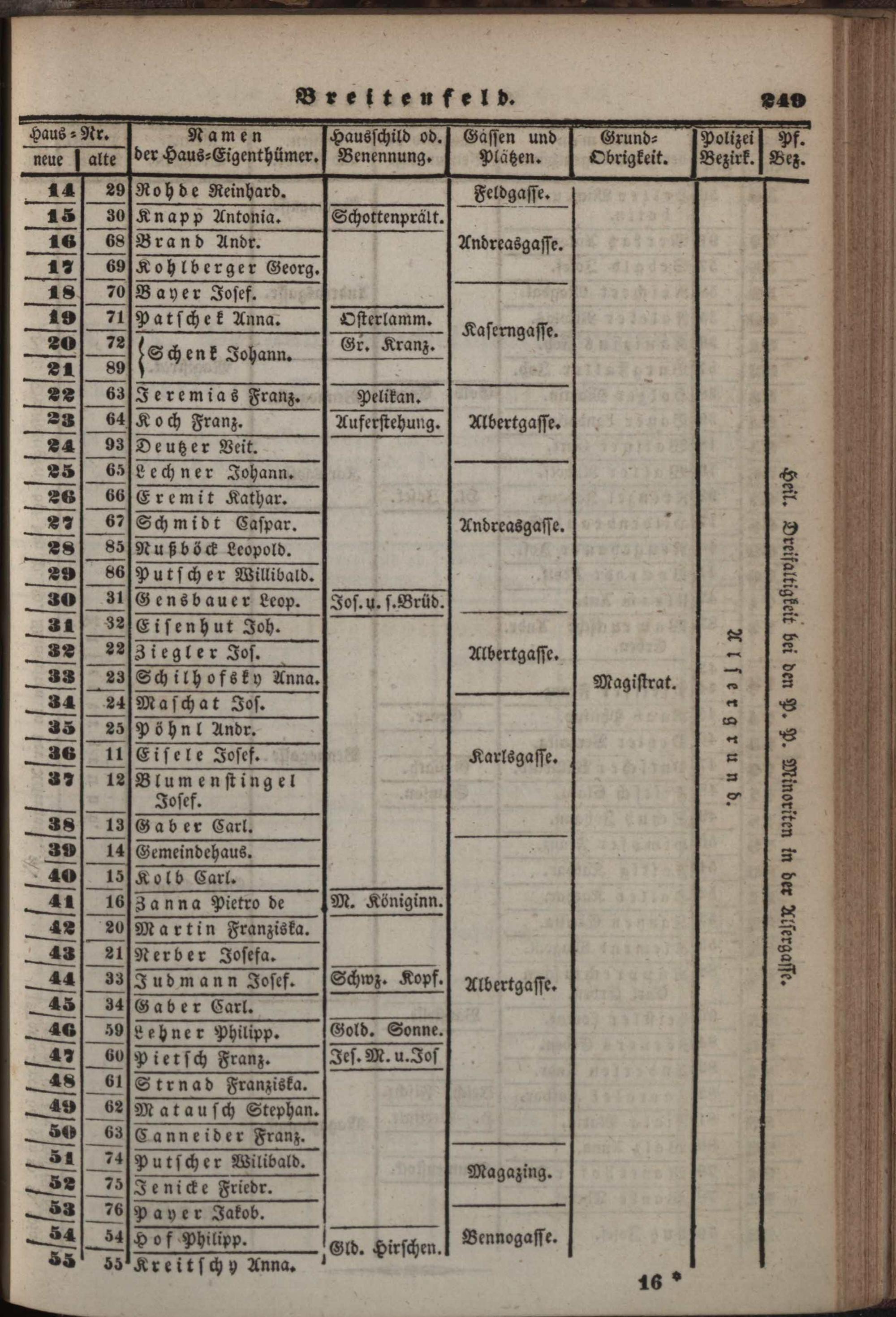 Neuer, verbesserter Häuser-Schema der k. k. Haupt- und Residenzstadt Wien mit ihren 34 Vorstädten, allen Neubauten und den angränzenden nahen Ortschaften, welche noch zu den Polizei-Bezirken Wiens gehören, als: Währing, Herrnals, Neulerchenfeld, Fünf- und Sechshaus, Rustendorf, Braunhirschengrund, Reindorf und Gaudenzdorf : mit genauer Angabe der Haus-Nummern, der Haus-Eigenthümer, Hausschilder, Gässen, Plätze, Grundobrigkeiten, Polizei- und Pfarr-Bezirken, so wie einem alphabetischen Namens-Verzeichnisse sämmtlicher Haus-Eigenthümer ; mit einem neuen Plane der Stadt und sämmtlichen Vorstädten mit den Haus-Nummern / nach den neuesten und zuverläßigsten Quellen bearb. und hrsg. von Carl Schwab
