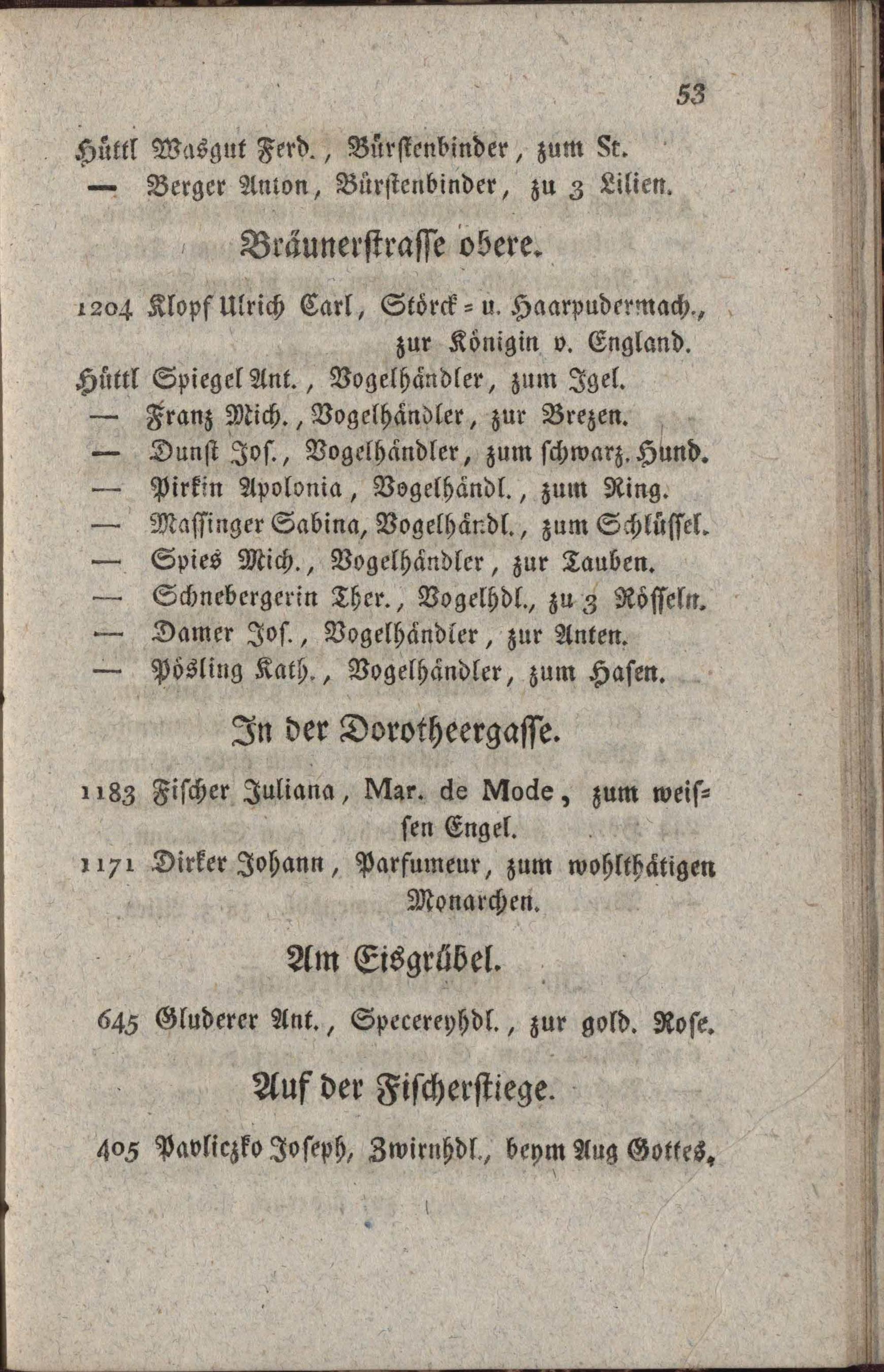 Schild Weiser der Handlungen und Gewerbe der innern Kaiserstadt Wien : zum bequemen Gebrauch für Einheimische und Fremde gesammelt und in vier alphabetitsche Verzeichnisse eingetheilt / von A R [Anton Redl]