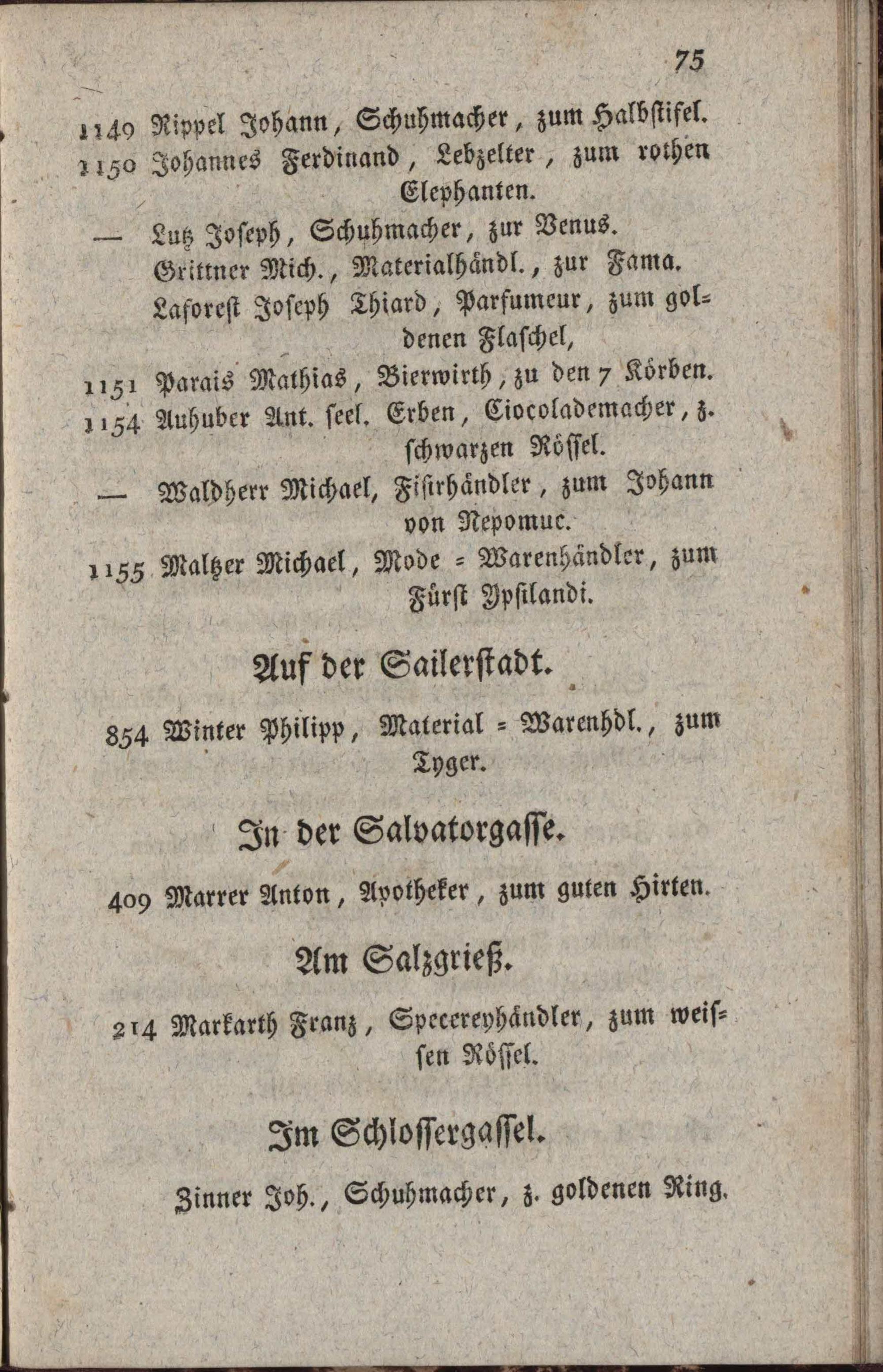 Schild Weiser der Handlungen und Gewerbe der innern Kaiserstadt Wien : zum bequemen Gebrauch für Einheimische und Fremde gesammelt und in vier alphabetitsche Verzeichnisse eingetheilt / von A R [Anton Redl]