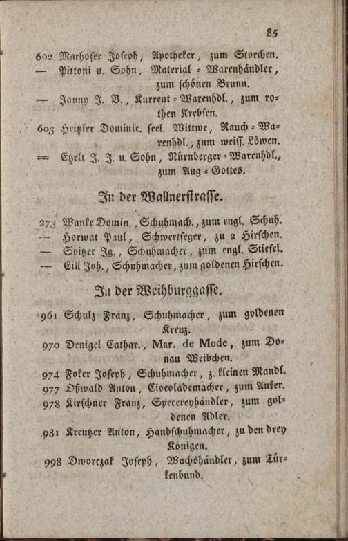 Schild Weiser der Handlungen und Gewerbe der innern Kaiserstadt Wien : zum bequemen Gebrauch für Einheimische und Fremde gesammelt und in vier alphabetitsche Verzeichnisse eingetheilt / von A R [Anton Redl]