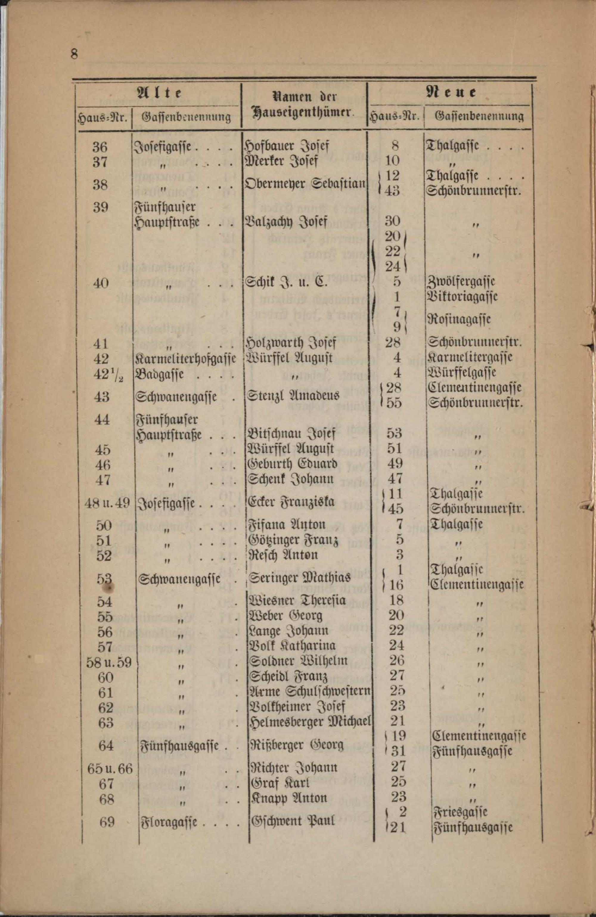 Orientirungs-Schema der Gemeinde Fünfhaus (nächst Wien) mit einem Orientirungs-Plane : Nachweis der alten und neuen Benennungen der Gassen, Straßen und Plätze in alphabetischer Ordnung