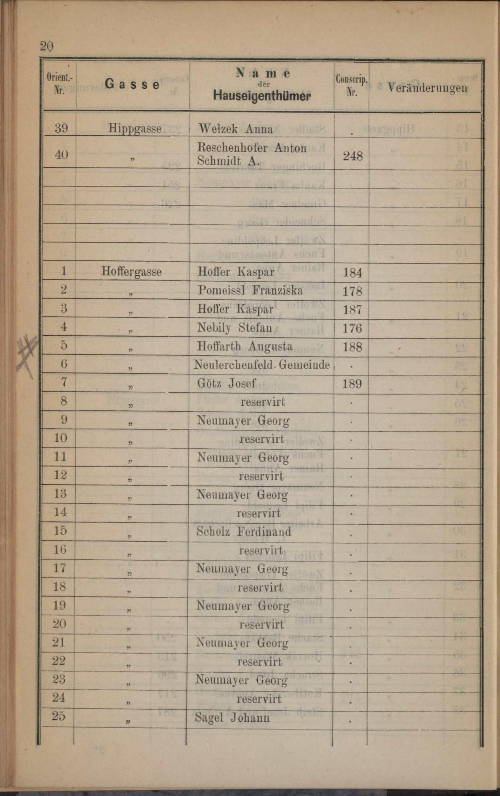 Orientirungs-Schema der Gemeinde Neulerchenfeld mit einem Orientirungs-Plane : Nachweis der neuen Benennungen der Gassen, Strassen und Plätze in alphabetischer Ordnung