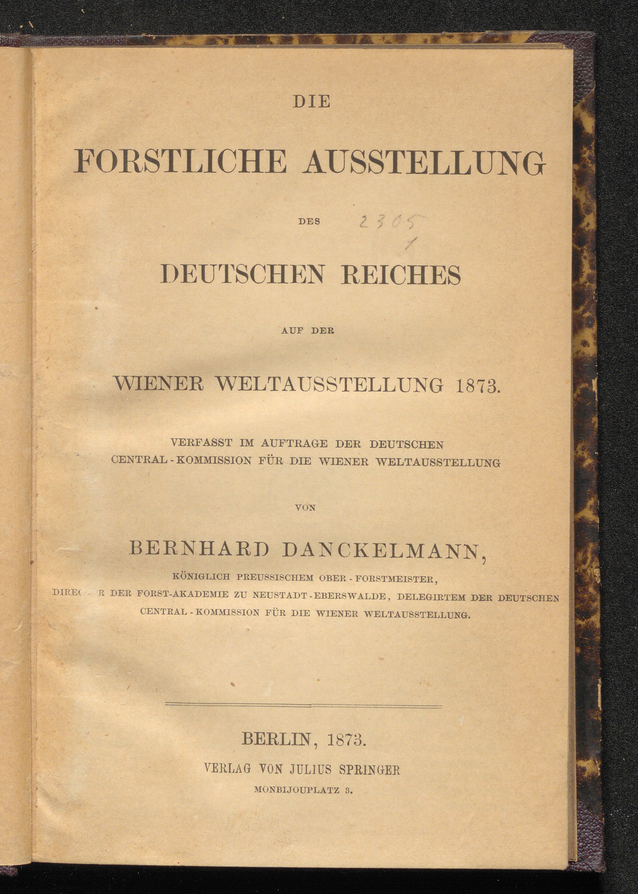 Die forstliche Ausstellung des Deutschen Reiches auf der Wiener Weltausstellung 1873 / Bernhard Danckelmann, verf. im Auftr. der Deutschen Central-Kommission für die Wiener Weltausstellung