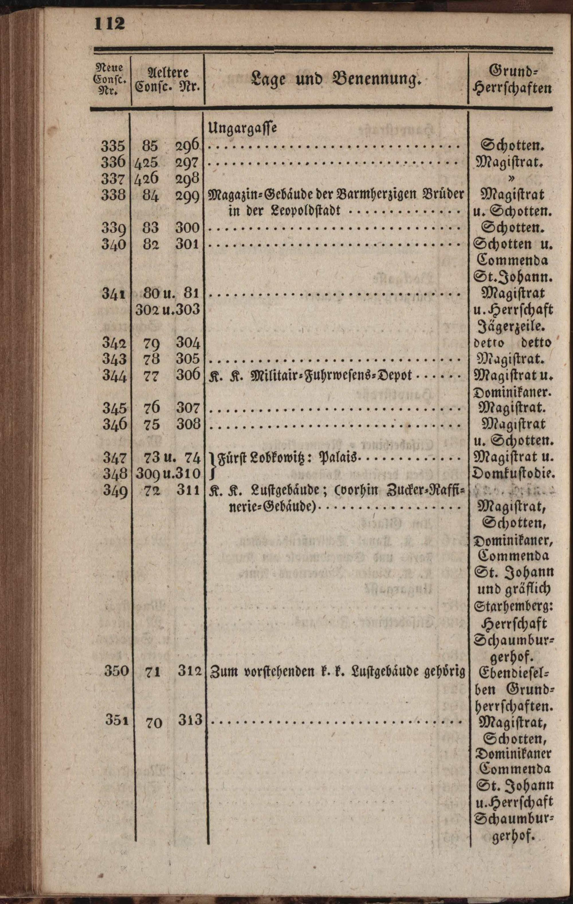 Darstellung der bei den Häusern in der Stadt und in den sämmtlichen Vorstädten Wiens einschreitenden Grundherrlichkeiten : nebst besonderen Verzeichnissen über die sowohl ganz, als auch nur theilweise dem n. ö. ständischen Cataster und der n. ö. Landtafel einverleibten, dann der Fideicommiß-Häuser und der bei der inneren Stadt und bei jedem einzelnen Vorstadtgrunde bestehenden Grundherrschaften / von Karl Ponschab