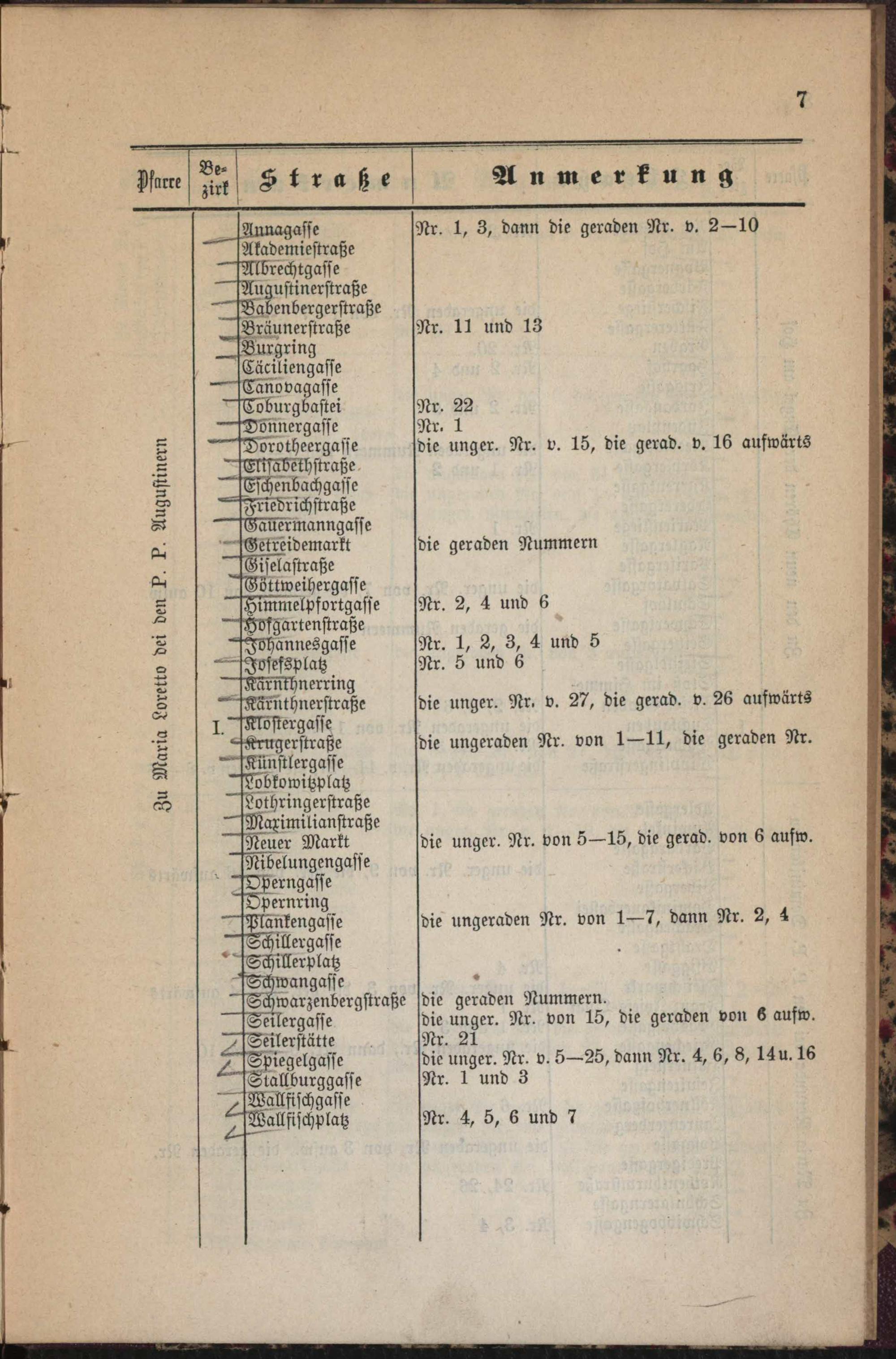 Eintheilung der k. k. Haupt- und Residenzstadt Wien nach Pfarrbezirken