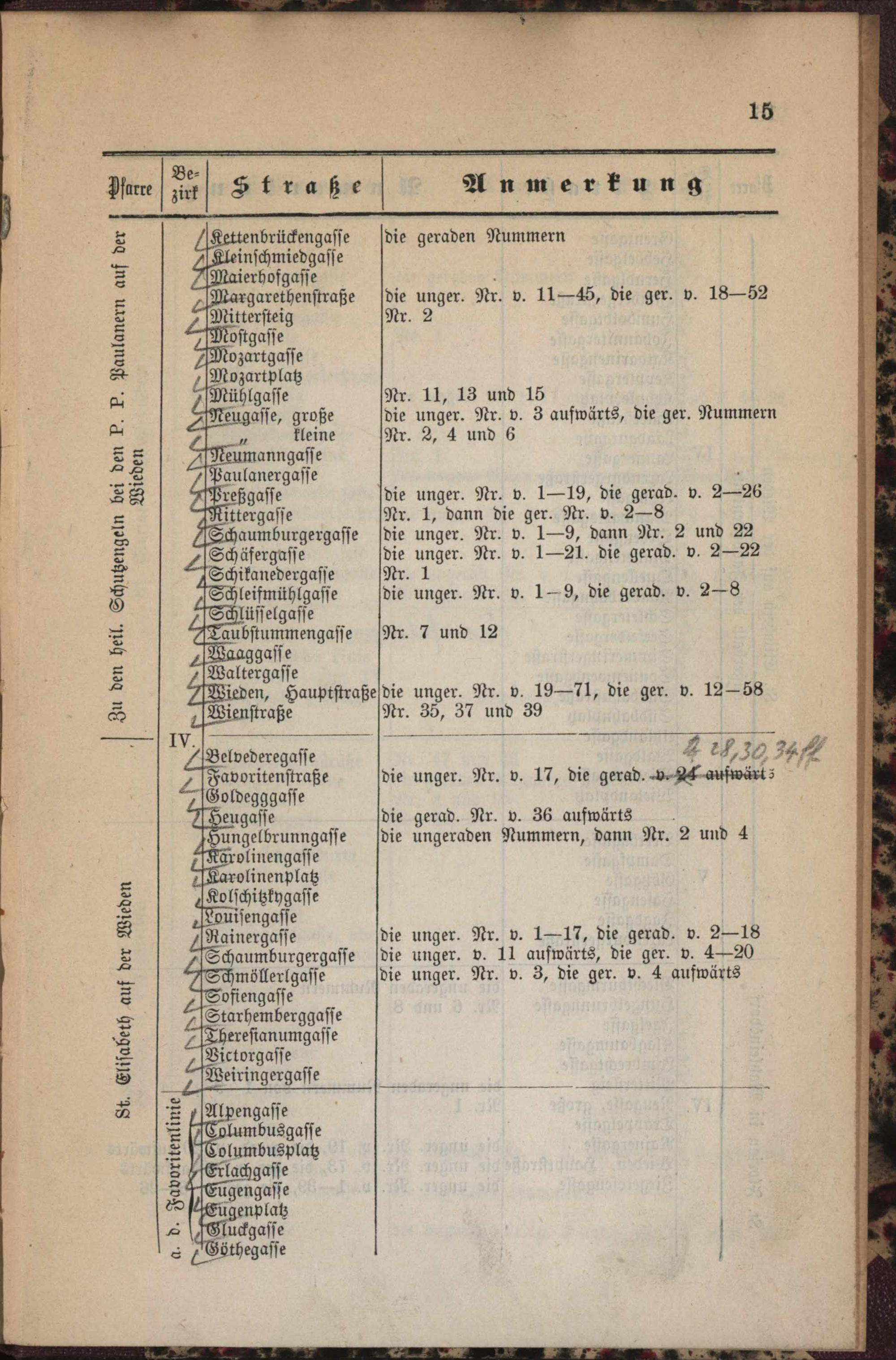 Eintheilung der k. k. Haupt- und Residenzstadt Wien nach Pfarrbezirken