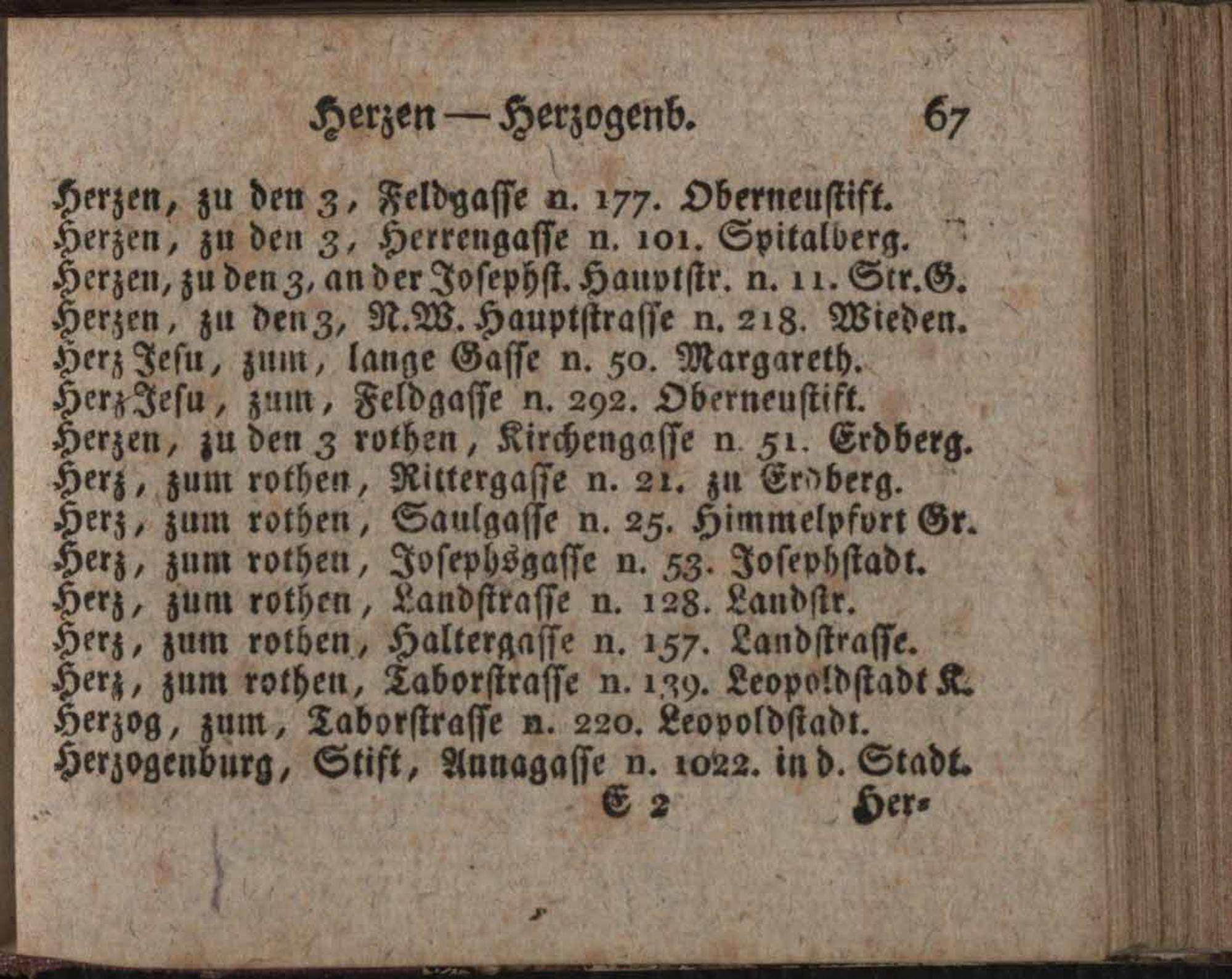 Wiener Schildregister, oder Anweisung, wie man sich auf der Stelle helfen kann, wenn man in Wien den Schild eines Hauses oder eines Kaufmannsgewölbes in und vor der Stadt suchen, und ihn finden will : Zum allgemeinen Nutzen, in kleinem Taschenformat herausgegeben
