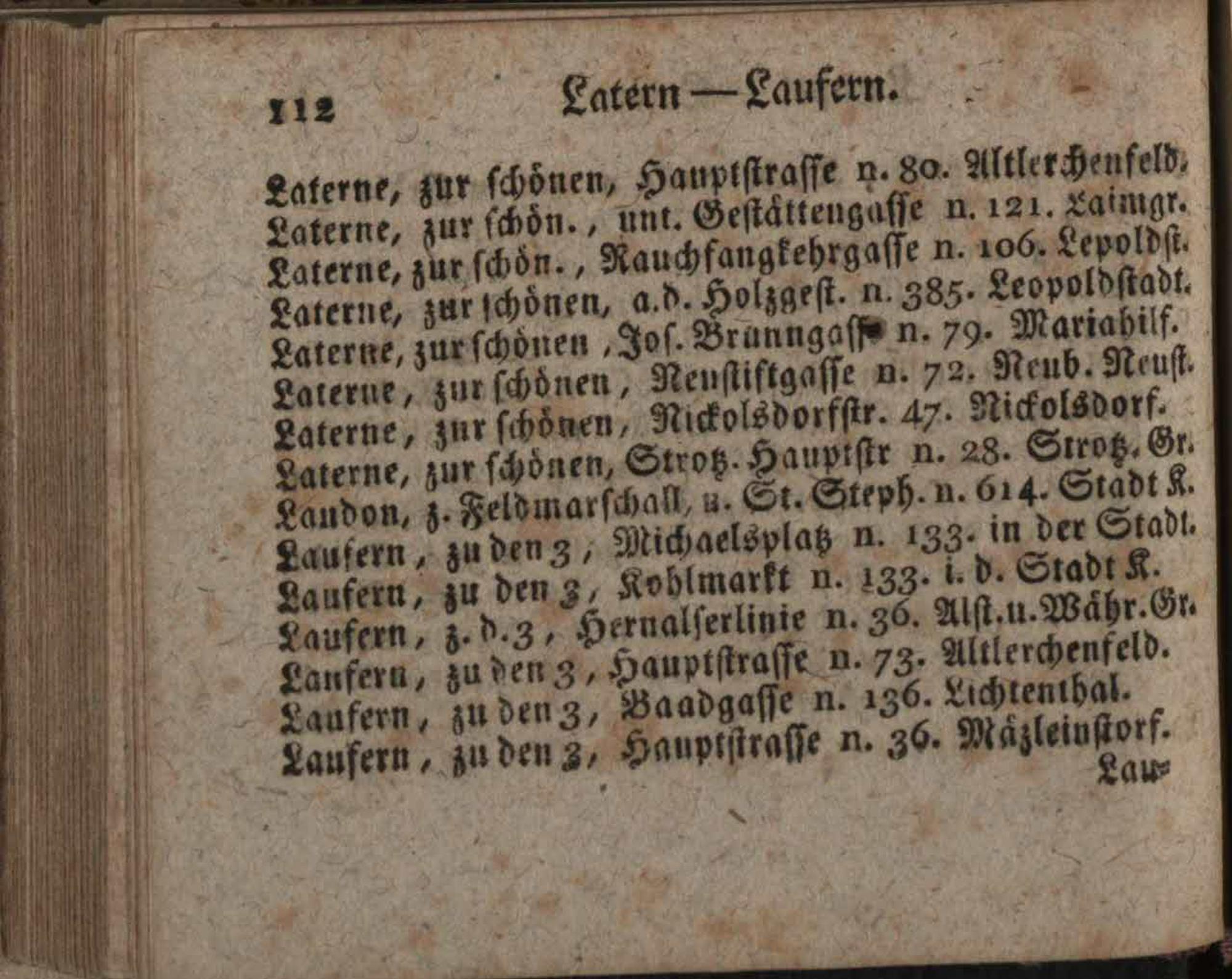 Wiener Schildregister, oder Anweisung, wie man sich auf der Stelle helfen kann, wenn man in Wien den Schild eines Hauses oder eines Kaufmannsgewölbes in und vor der Stadt suchen, und ihn finden will : Zum allgemeinen Nutzen, in kleinem Taschenformat herausgegeben