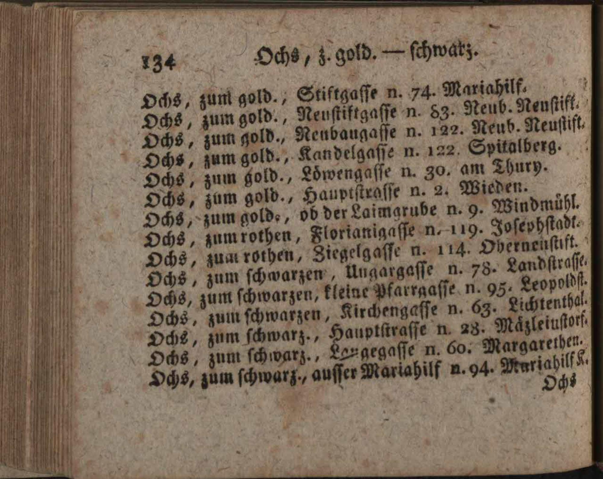 Wiener Schildregister, oder Anweisung, wie man sich auf der Stelle helfen kann, wenn man in Wien den Schild eines Hauses oder eines Kaufmannsgewölbes in und vor der Stadt suchen, und ihn finden will : Zum allgemeinen Nutzen, in kleinem Taschenformat herausgegeben