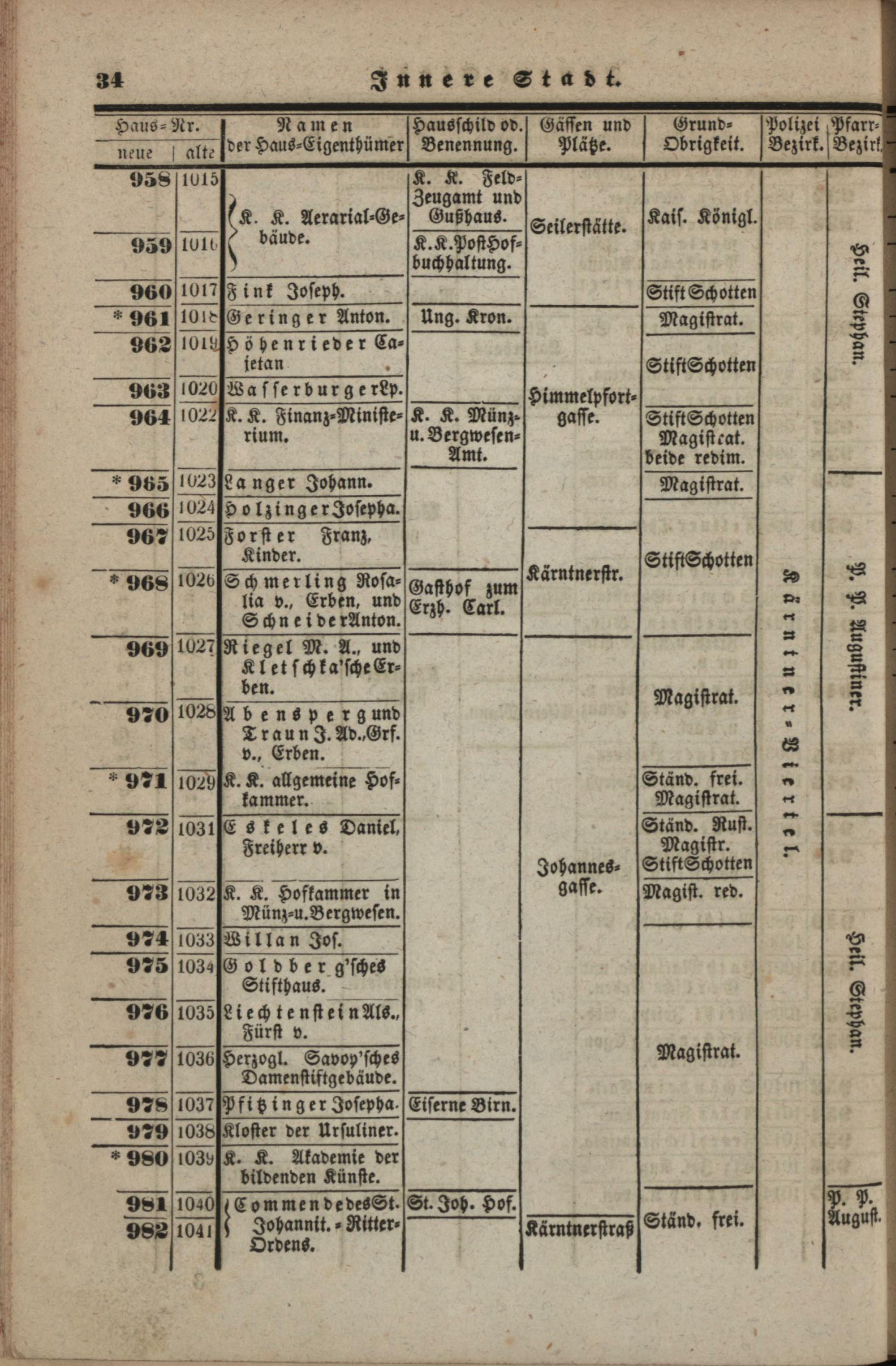 Neues, verbessertes und vermehrtes Häuser-Schema der k. k. Haupt- und Residenzstadt Wien : mit ihren 34 Vorstädten, allen Neubauten und den angränzenden nahen Ortschaften, welche noch zu den Polizei-Bezirken Wiens gehören, als: Brigittenau, Währing, Hernals, Neulerchenfeld, Fünf- und Sechshaus, Rustendorf, Braunhirschen, Reindorf, dann Gaudenzdorf ; mit genauer Angabe der Haus-Nummern...