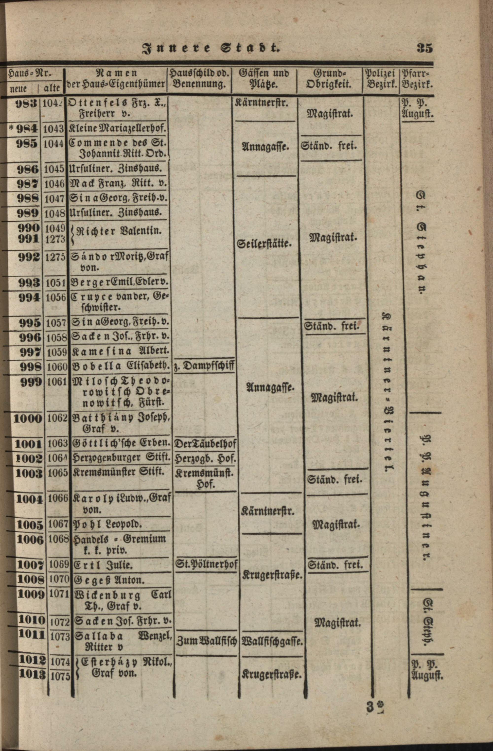 Neues, verbessertes und vermehrtes Häuser-Schema der k. k. Haupt- und Residenzstadt Wien : mit ihren 34 Vorstädten, allen Neubauten und den angränzenden nahen Ortschaften, welche noch zu den Polizei-Bezirken Wiens gehören, als: Brigittenau, Währing, Hernals, Neulerchenfeld, Fünf- und Sechshaus, Rustendorf, Braunhirschen, Reindorf, dann Gaudenzdorf ; mit genauer Angabe der Haus-Nummern...